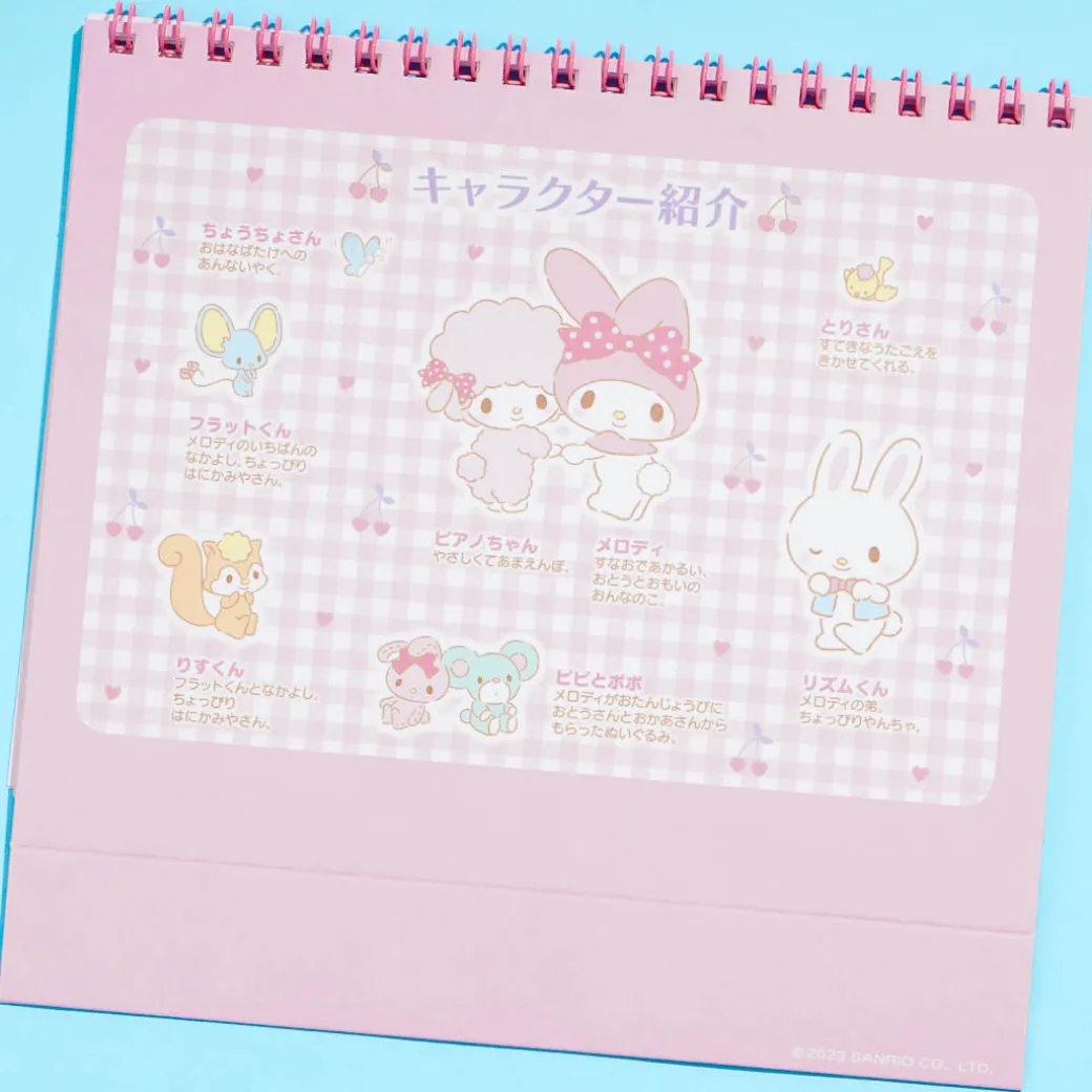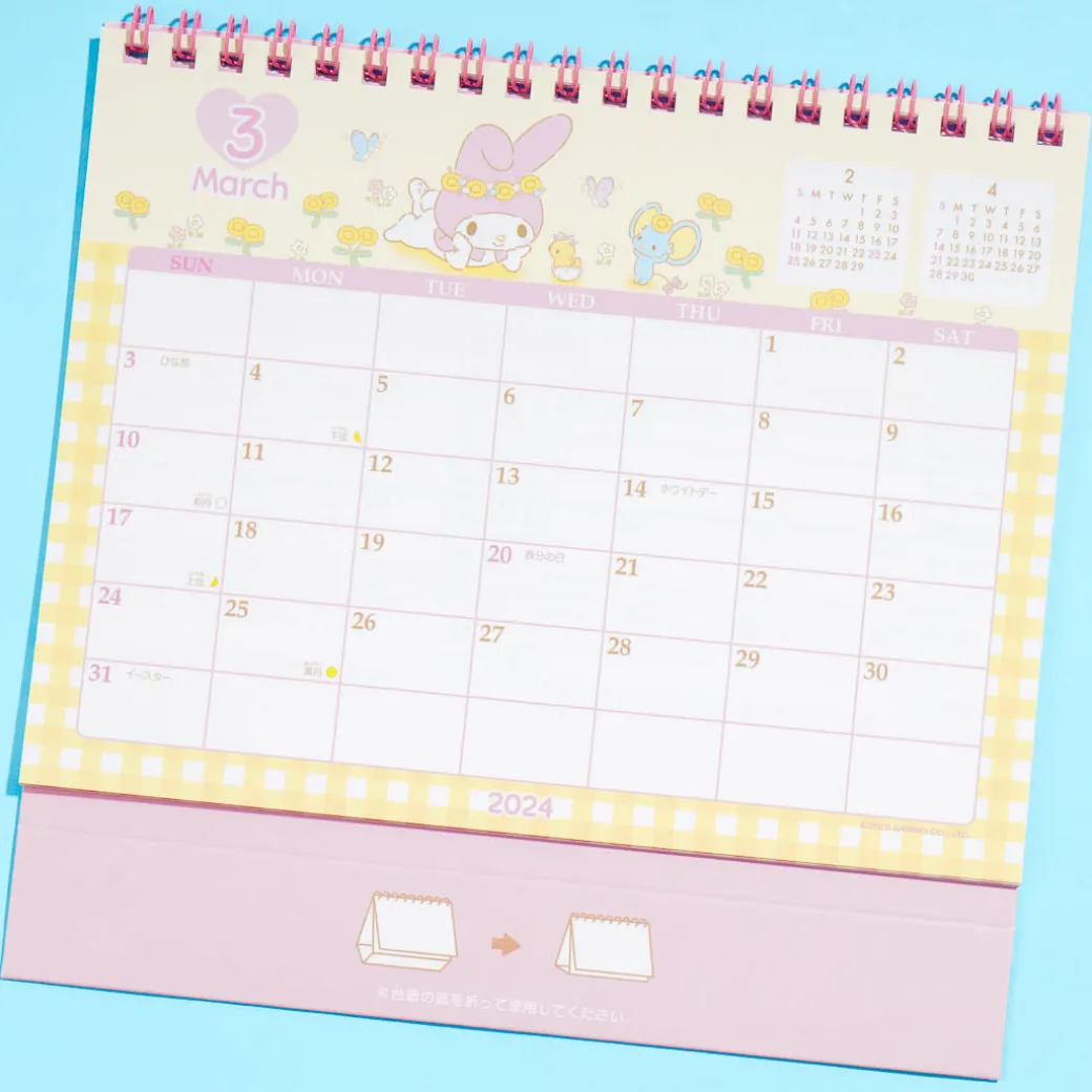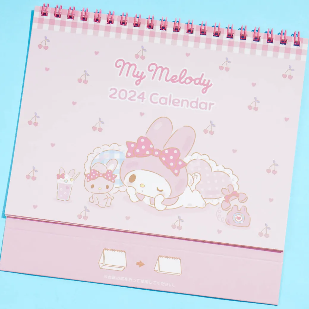 This kawaii desk calendar features cute illustrations of My Melody and her friends! Each monthly page has a cute pattern where you can easily see the dates and write down your reminders. This calendar is suitable for both office and home use, as it doesn’t take up much space and it comes with a cardboard stand!