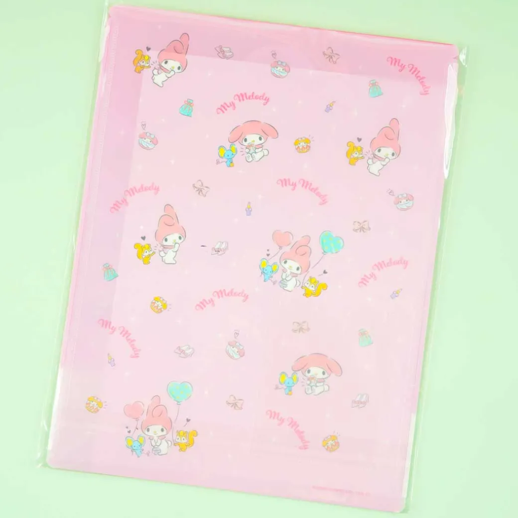 Store both your used and unused B5-sized loose sheets inside this kawaii vertical envelope! It’s decorated with illustrations of My Melody with her friends Flat the mouse and Risu the squirrel.