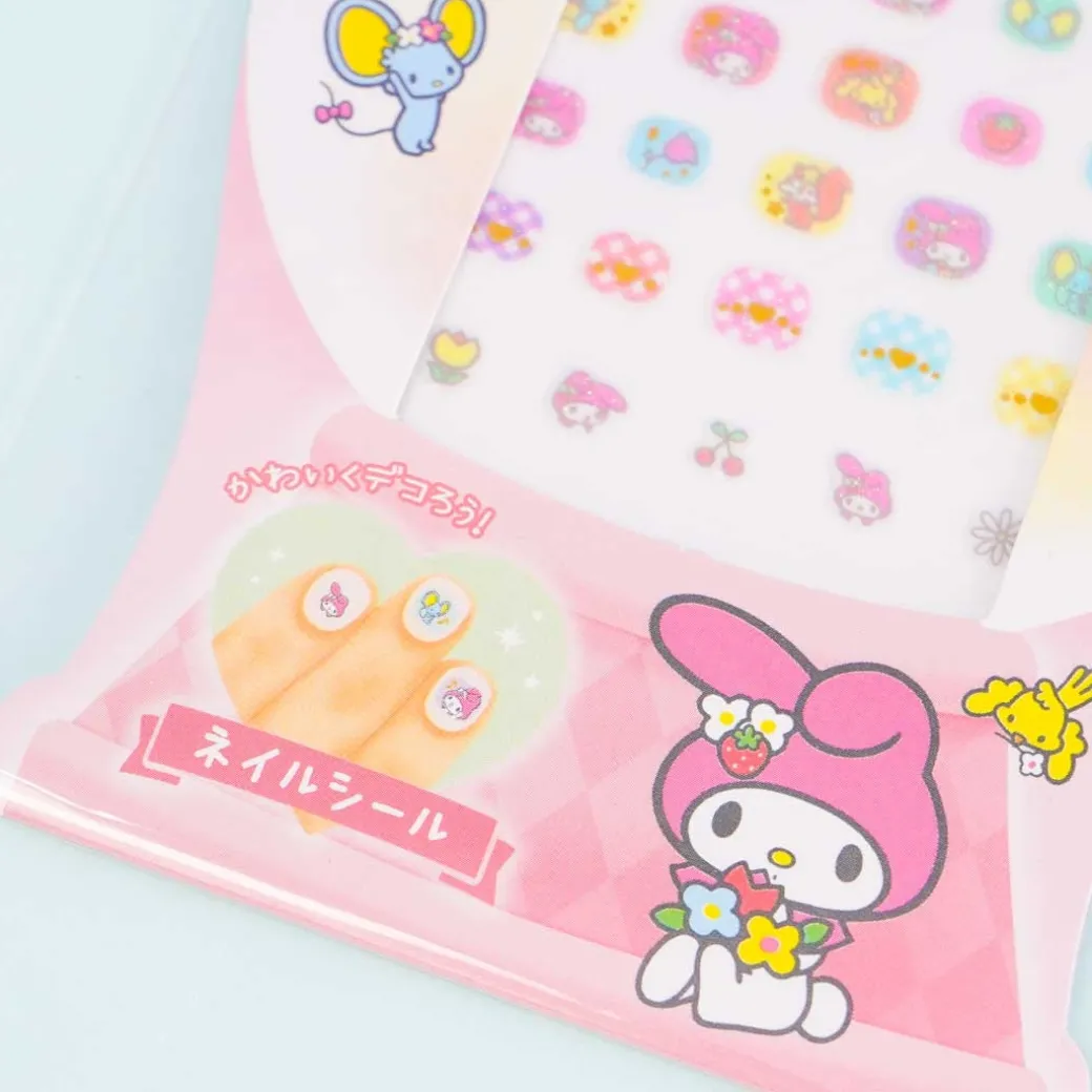 - A super kawaii set of nail stickers featuring My Melody and her animal pals