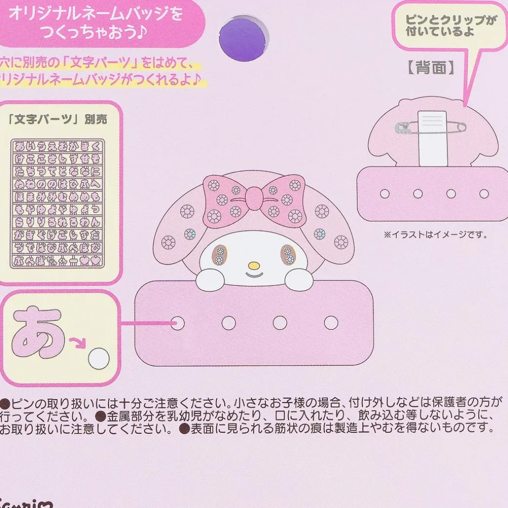 My Melody looks super cute and sparkly with gems and glitter! Use this name tag with a clip and safety pin to display your name kawaii-style! You can attach it to your bag or on your jacket.