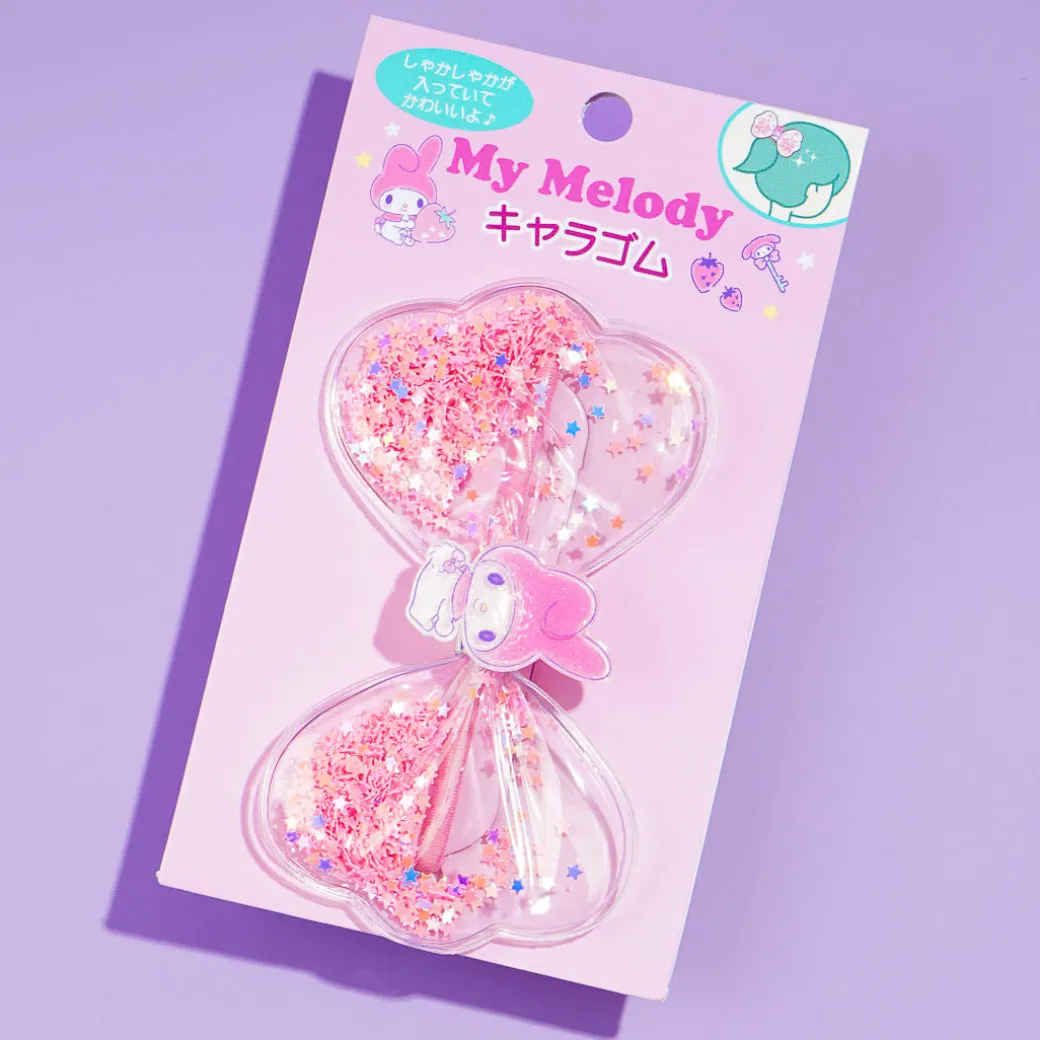 This kawaii hair tie has a glitter-filled ribbon decor with My Melody sitting at the center. Use it to keep your hair nice and kempt! You can also use the hair tie as a bag decor by tying it on the strap.