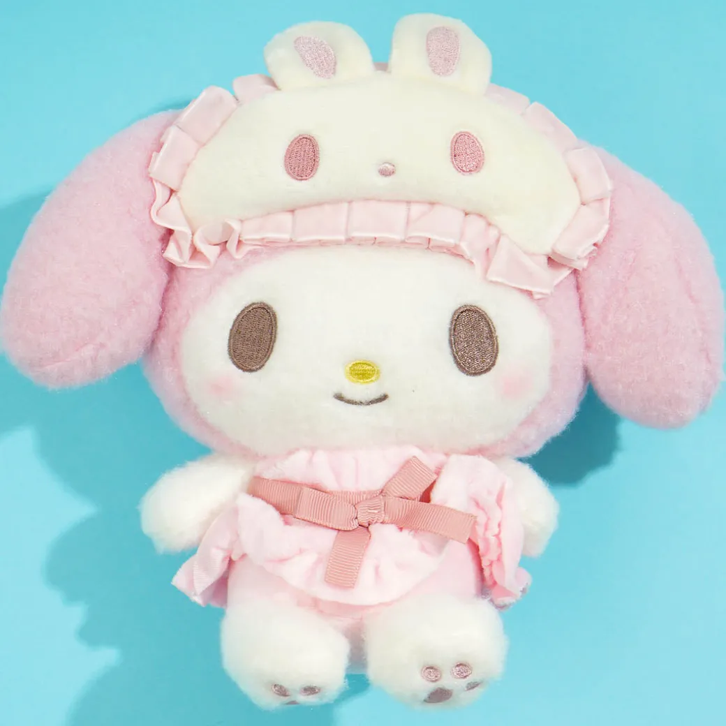 Enjoy playing with this super cute My Melody plushie! It’s wearing a pastel nightdress with a matching bunny eye mask. This small-sized stuffed toy comes from the Sanrio “Good Friend Pajamas” series.