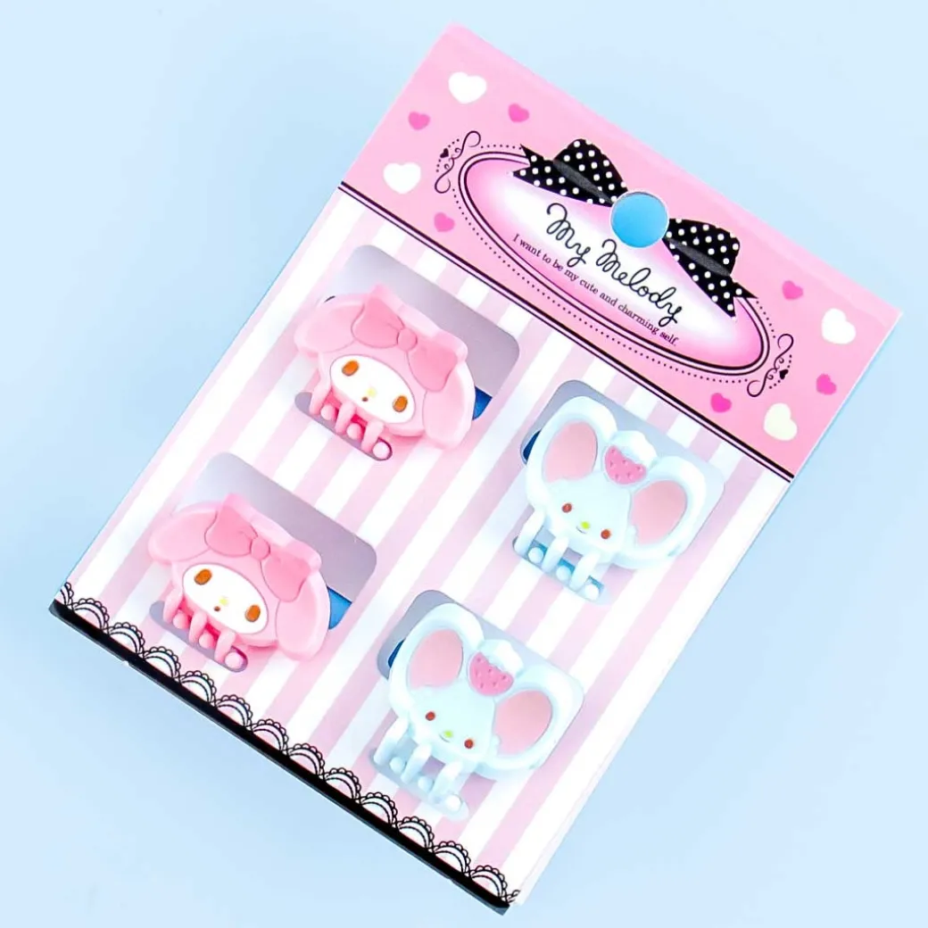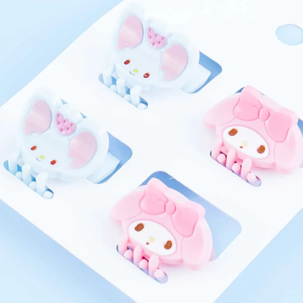 - A kawaii set of hair clips shaped like the heads of My Melody and Flat