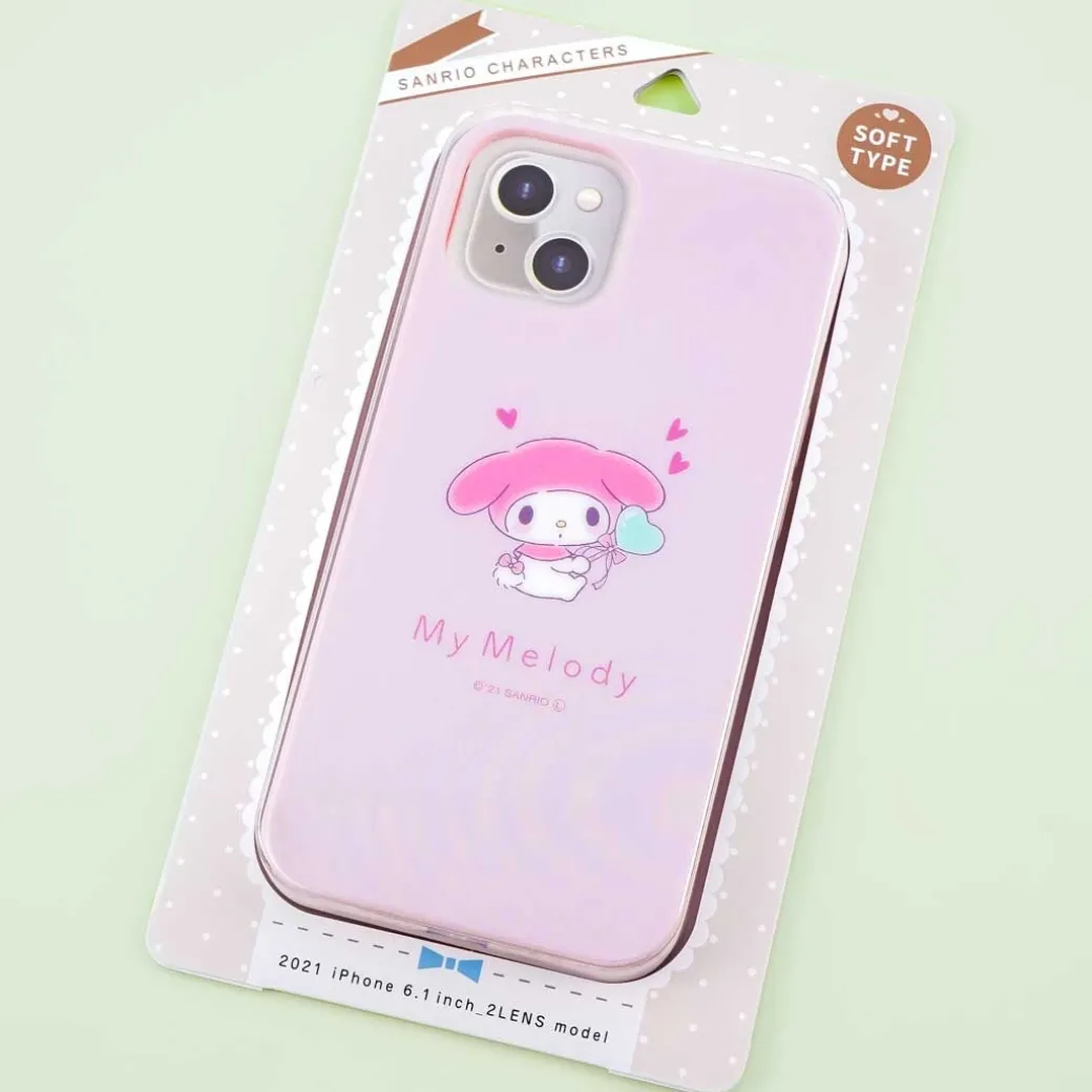 - A kawaii protective iPhone soft case with prints of My Melody with a lollipop and surrounded with hearts