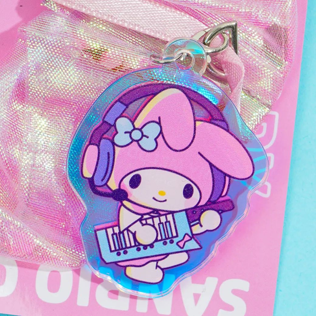 This super kawaii hair tie is made of shiny holographic material. Use it to tie up your hair into a cute pony tail! It also has a kawaii My Melody acrylic charm.