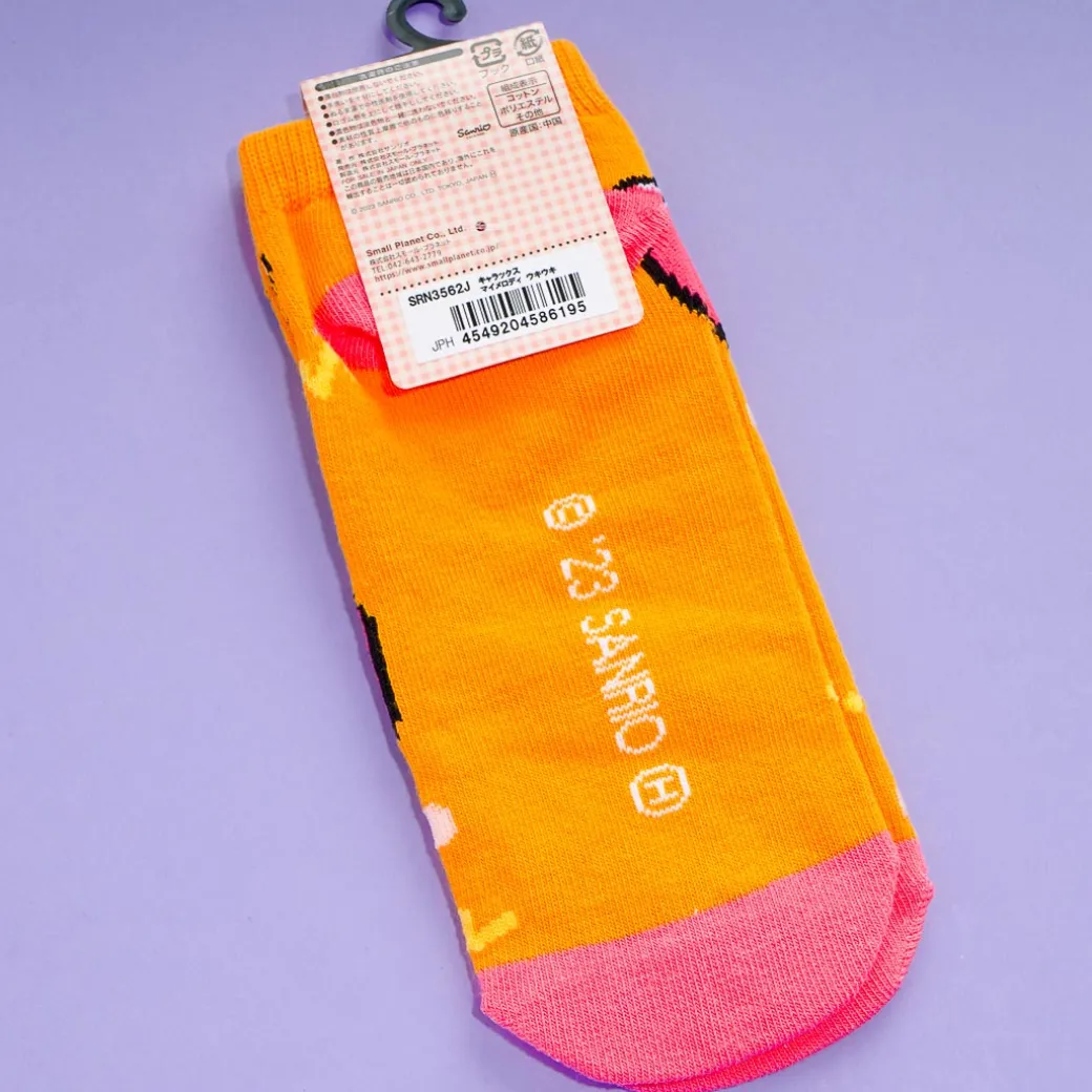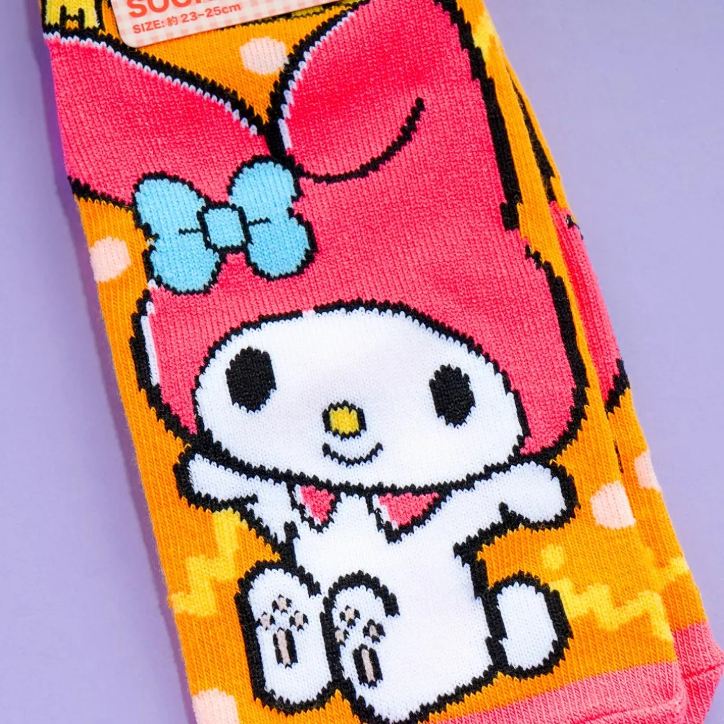 Keep your feet warm and cute with this pair of ankle-length orange jacquard socks! It also features a happy and kawaii My Melody print.