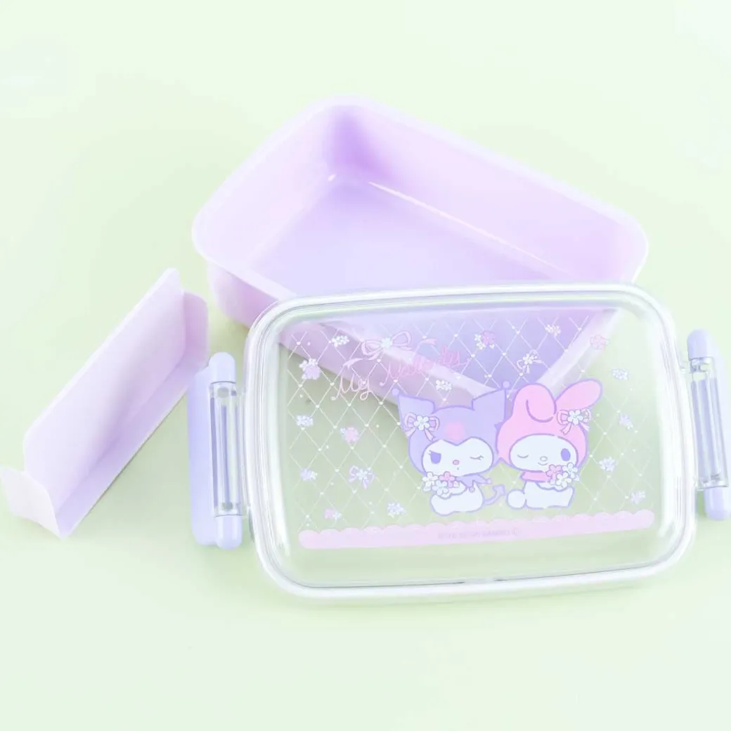- A kawaii bento box illustrated with My Melody and Kuromi together with flowers