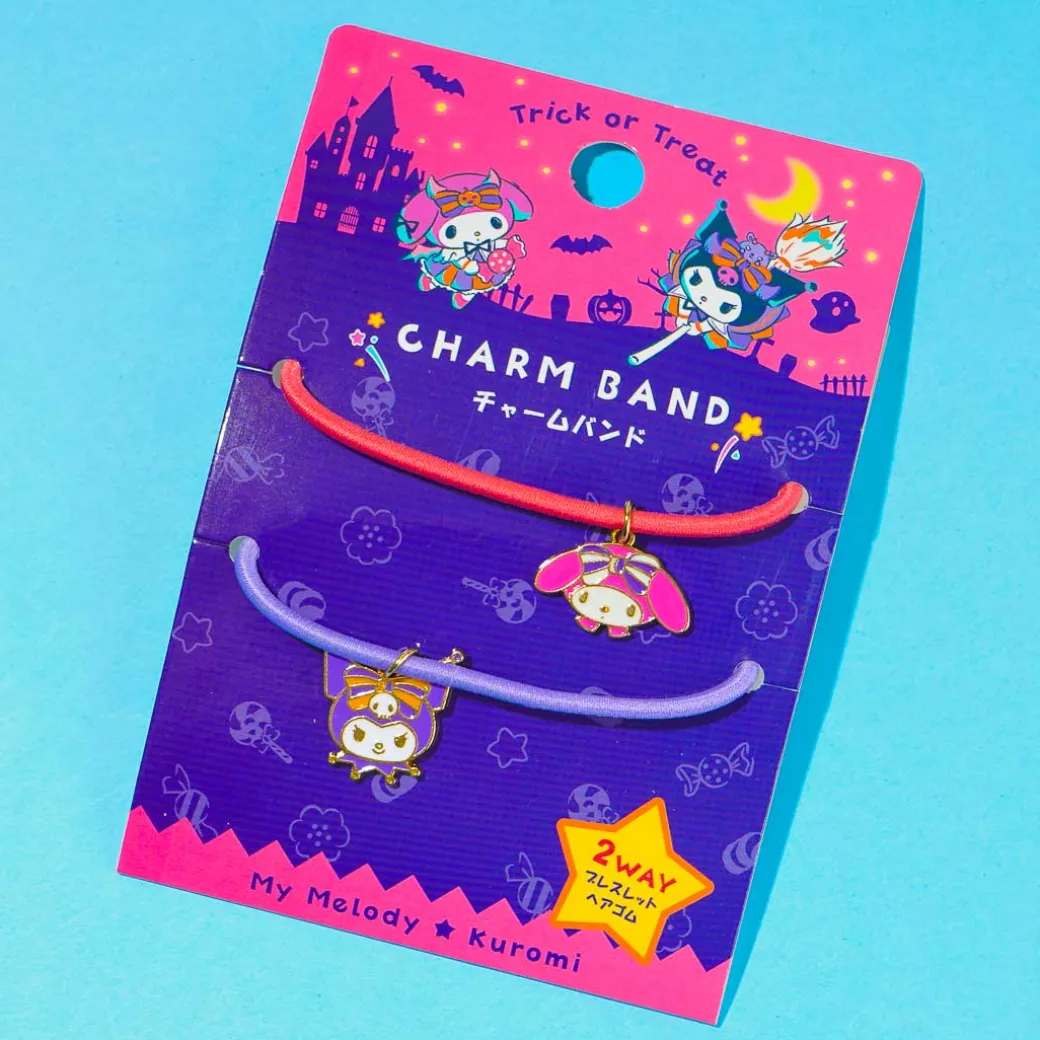 Be matchy-matchy with your bestie with these kawaii hair ties! These can be also be used as bracelets! They feature cute charms of My Melody and Kuromi wearing Halloween-themed ribbons!.