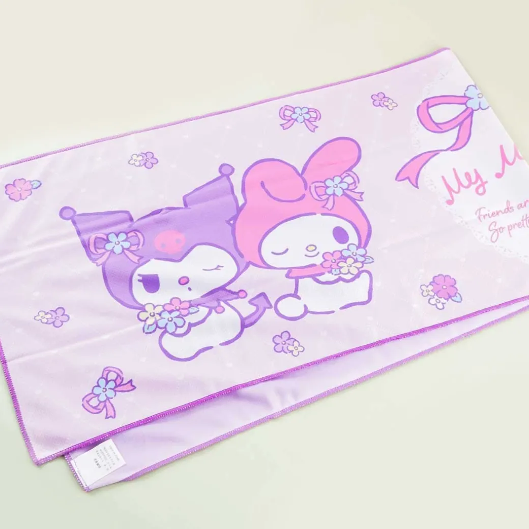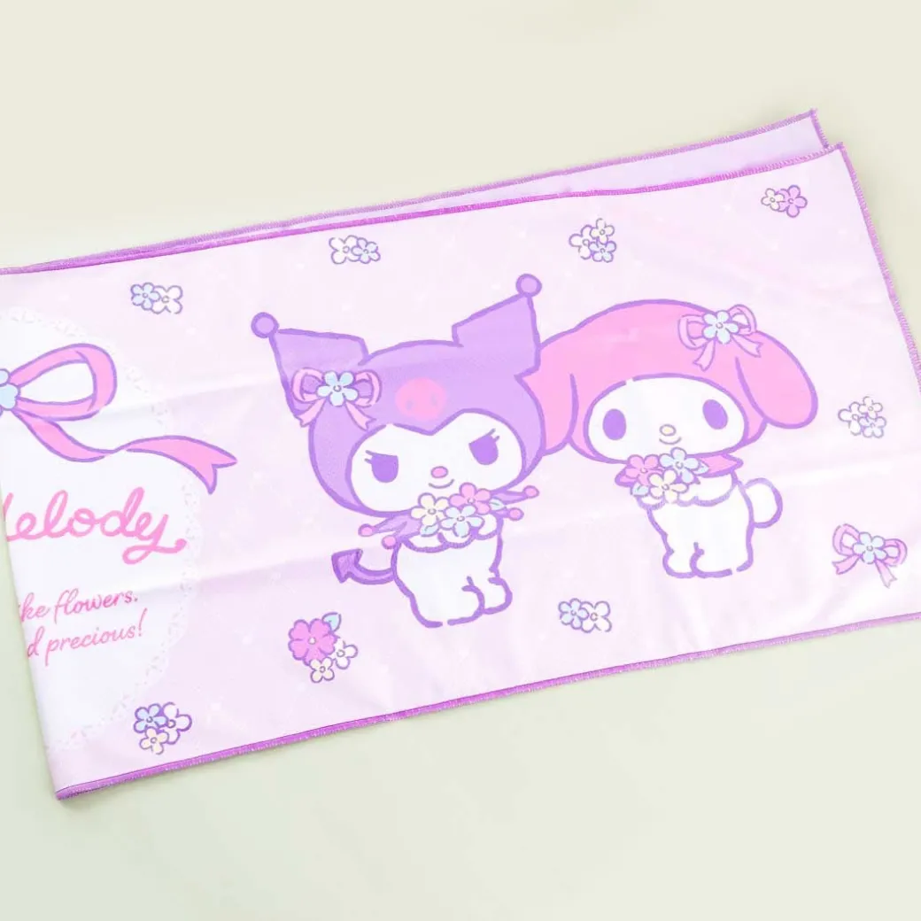 - A super cute long towel featuring illustrations of Kuromi and My Melody