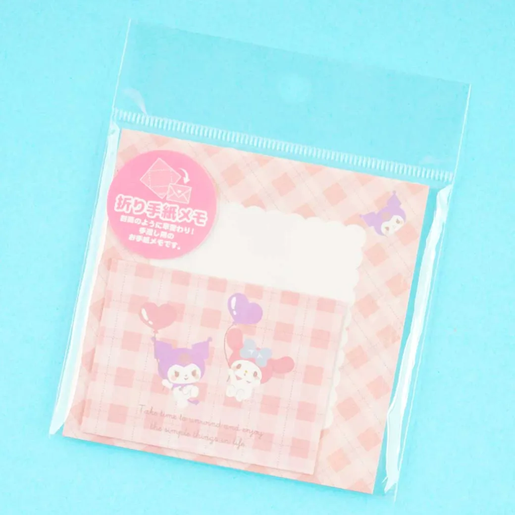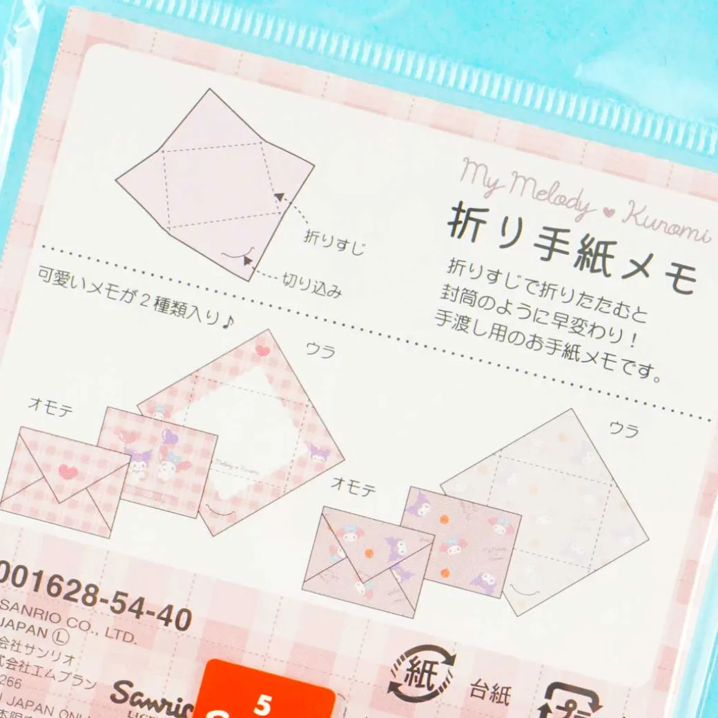This super kawaii memo pad set is decorated with prints of My Melody and Kuromi hanging out. Use it to write important notes for yourself or for your friends! Each sheet can be folded to look like an envelope to send to your buddies.