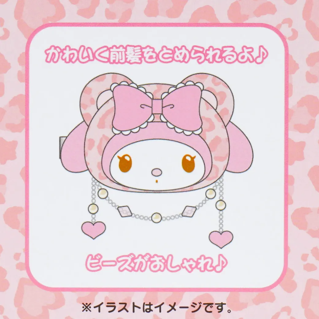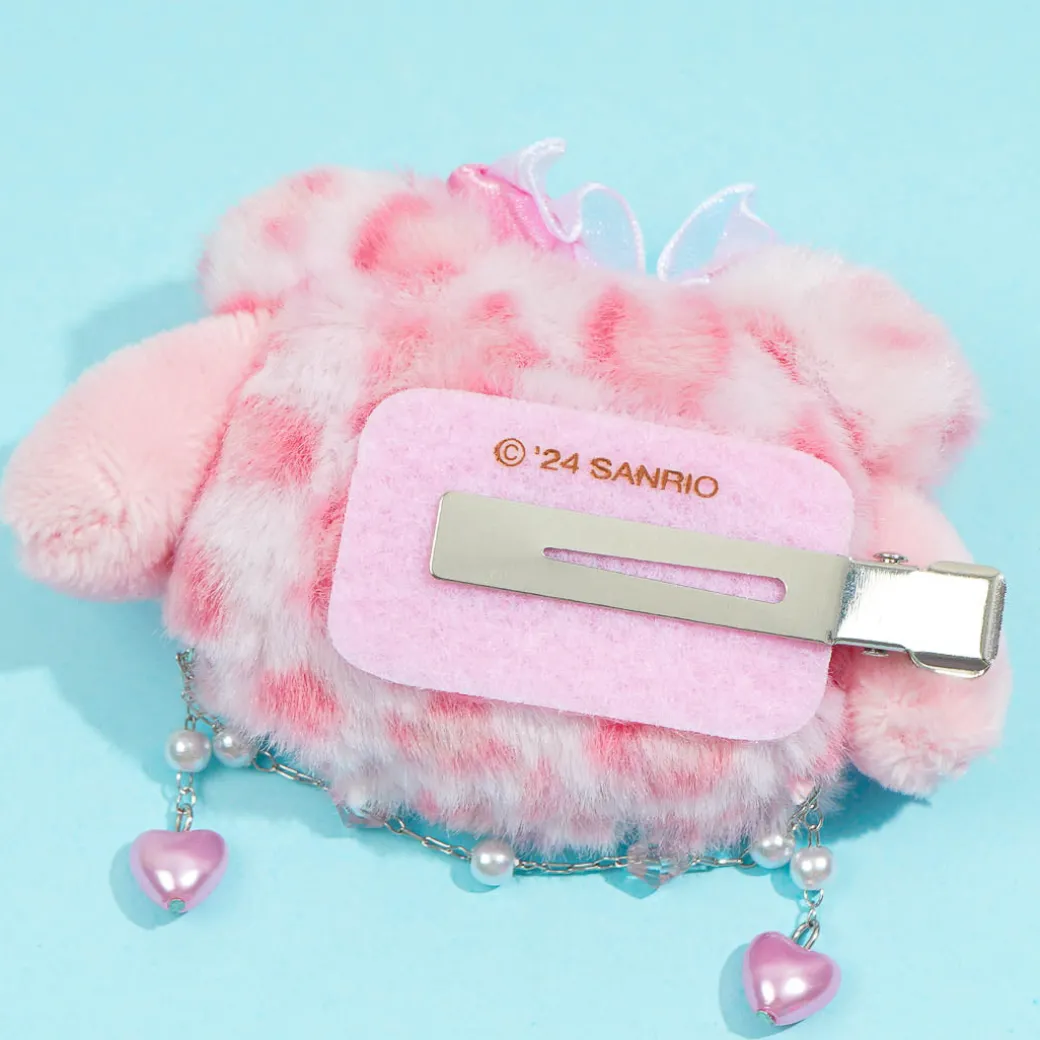 Your hairstyle will look much cuter when you use this fluffy hair clip! It features a plushie-looking My Melody charm that’s wearing a leopard-print headgear and has a cute metal chain.