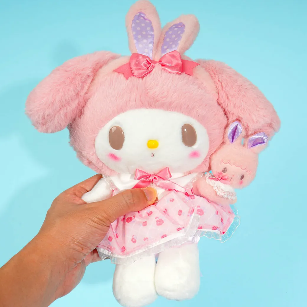 Snuggle with this kawaii My Melody plushie! It’s wearing a cute doll dress with matching bunny ears. This cutie is made of fluffy polyester and comes in medium size.