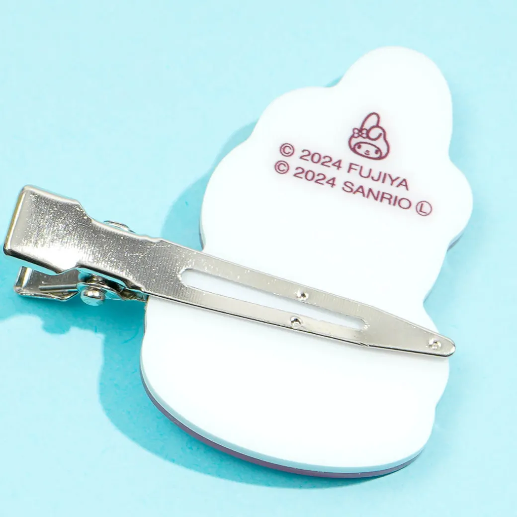 Use this super cute set of hair clips to give yourself a cute hairdo! One of the clips showcases My Melody playing with a macaron. The other features a print of My Melody transformed into one!