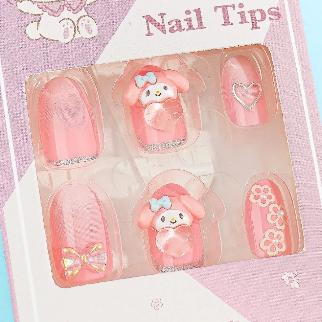 Kawaii-fy your hands with this super kawaii set of adhesive nails. It features a cute My Melody design! Just follow the instructions on the back on how to apply them to your nails.