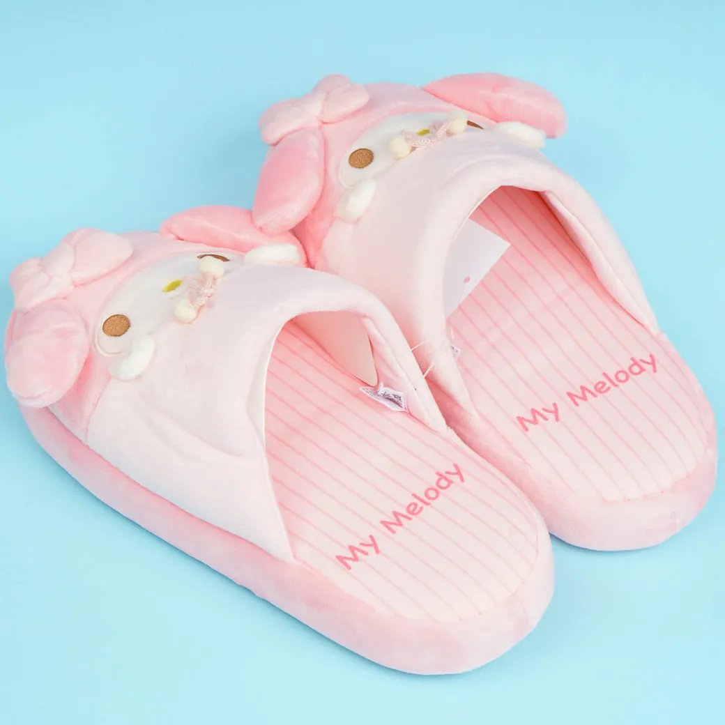 Look comfy and cute even when indoors by wearing this kawaii pair! Each fluffy bedroom slipper has a unique 3D design that looks like My Melody peeking out from her blanket.