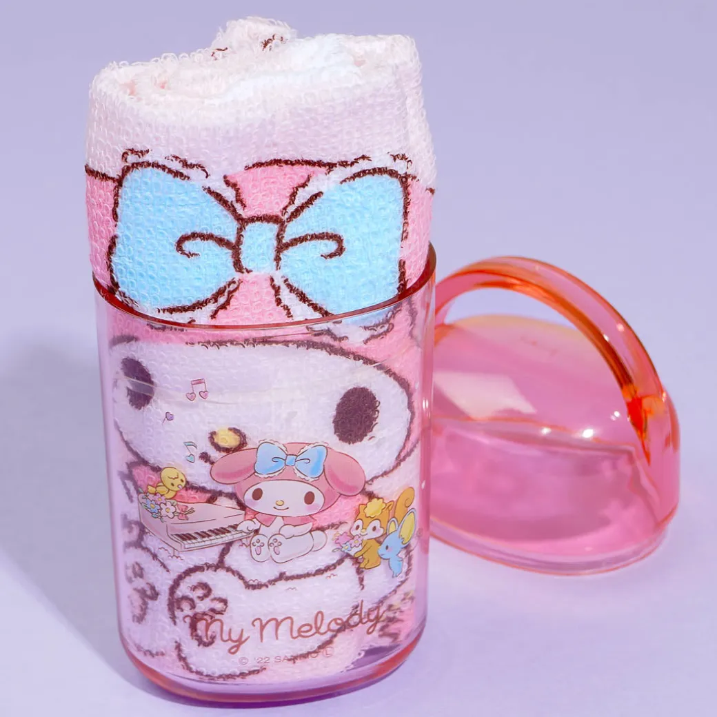 Bring this towel set when you go out for a picnic on a sunny day! It features cute illustrations of My Melody having a piano recital. The towel is made from absorbent cotton material with added antibacterial properties. This set also includes a case so you can conveniently bring your wet towel!