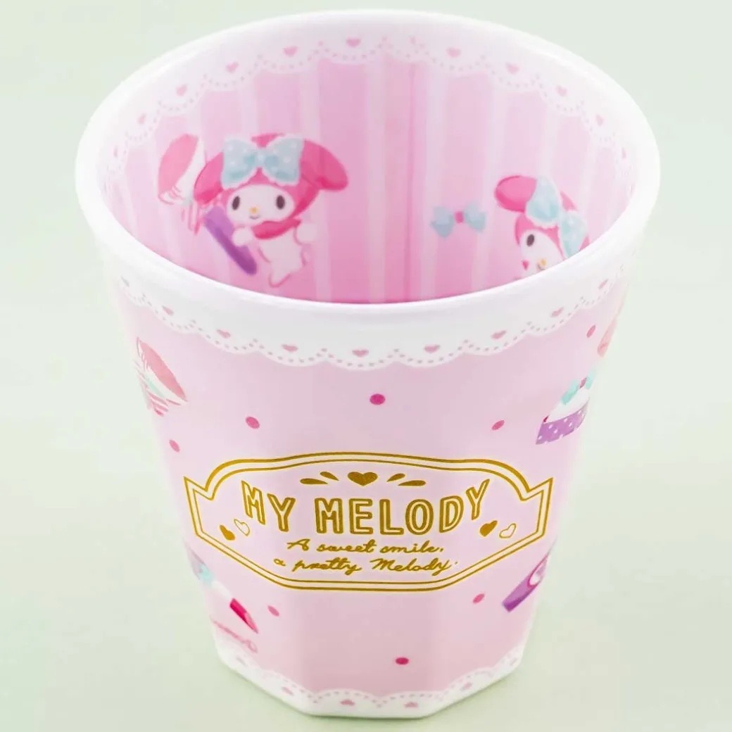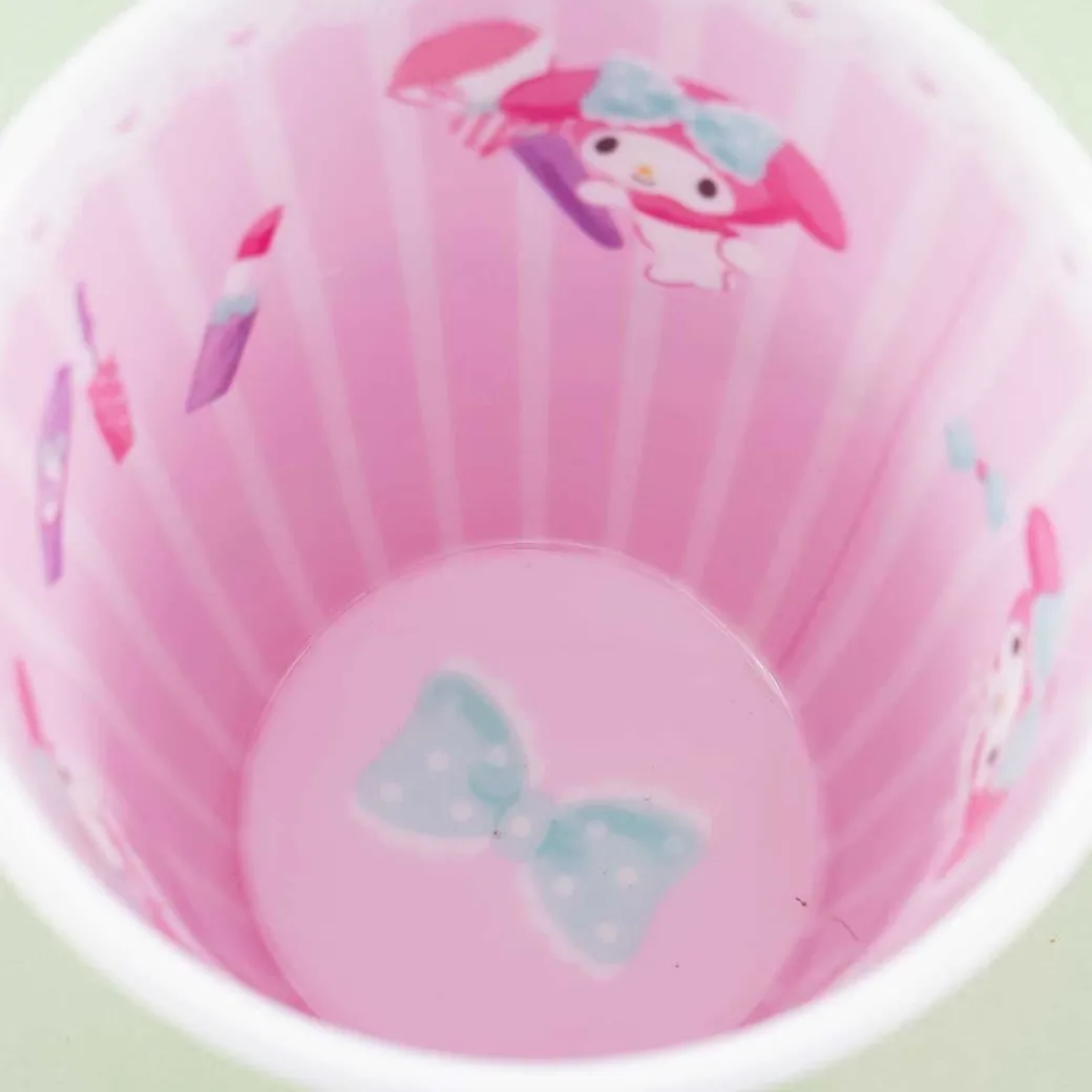 - A cute drinking cup decorated with illustrations of My Melody in her pink bedroom