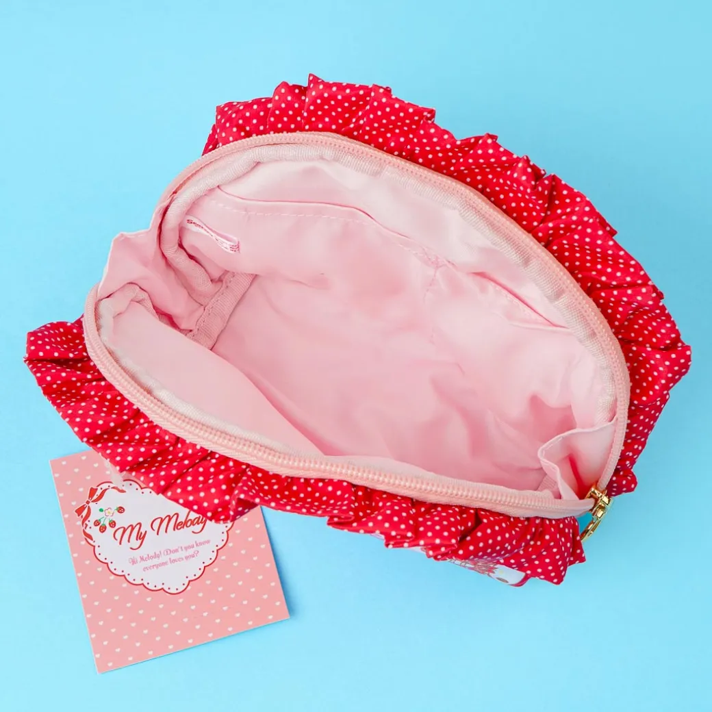Keep your lipstick, hand cream, and other small beauty essentials inside this super cute oval pouch! It’s decorated with frills on the edges and lots of prints featuring My Melody in different prairie dresses.