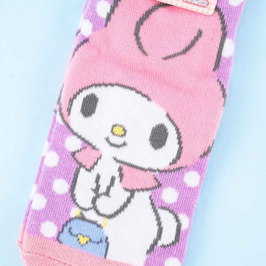 - A cute pair of dotted socks illustrated with My Melody holding a purse