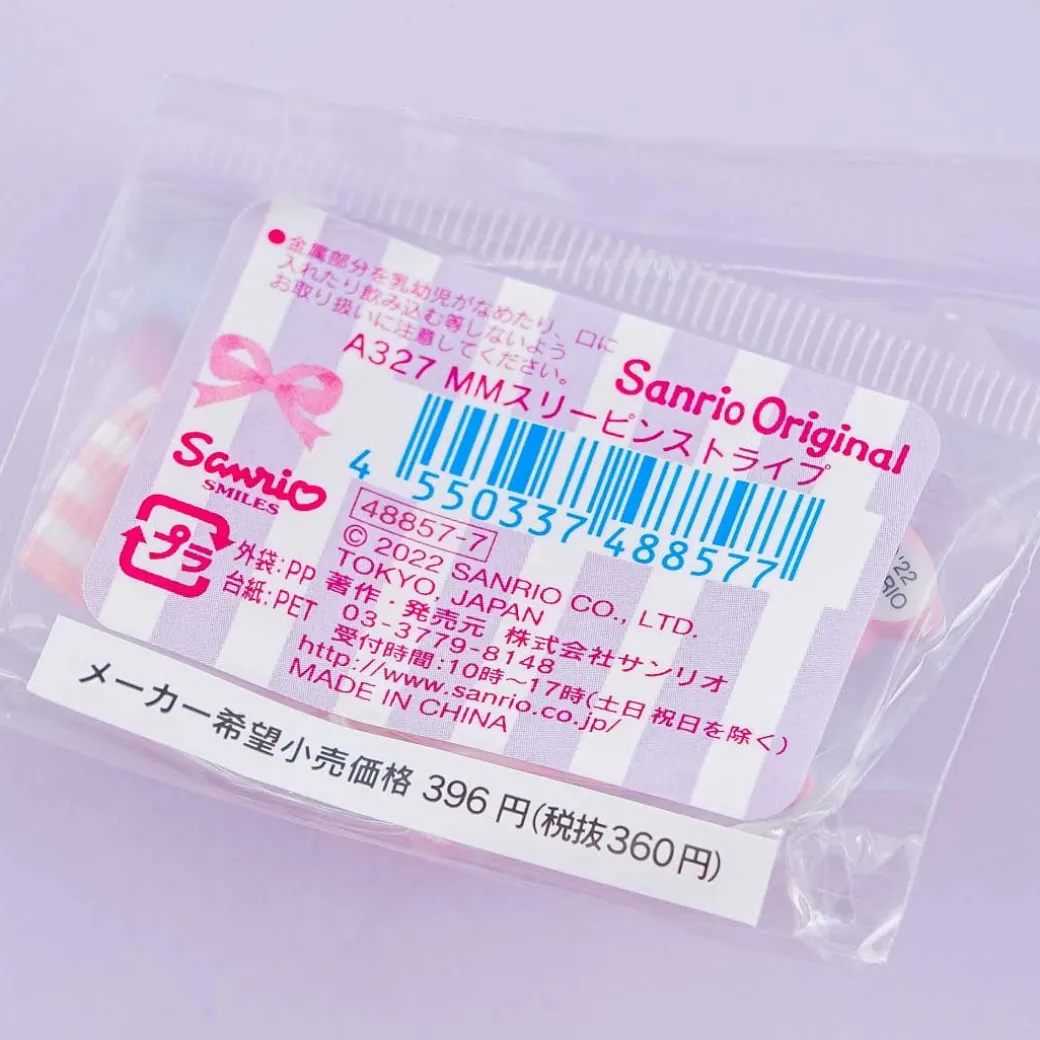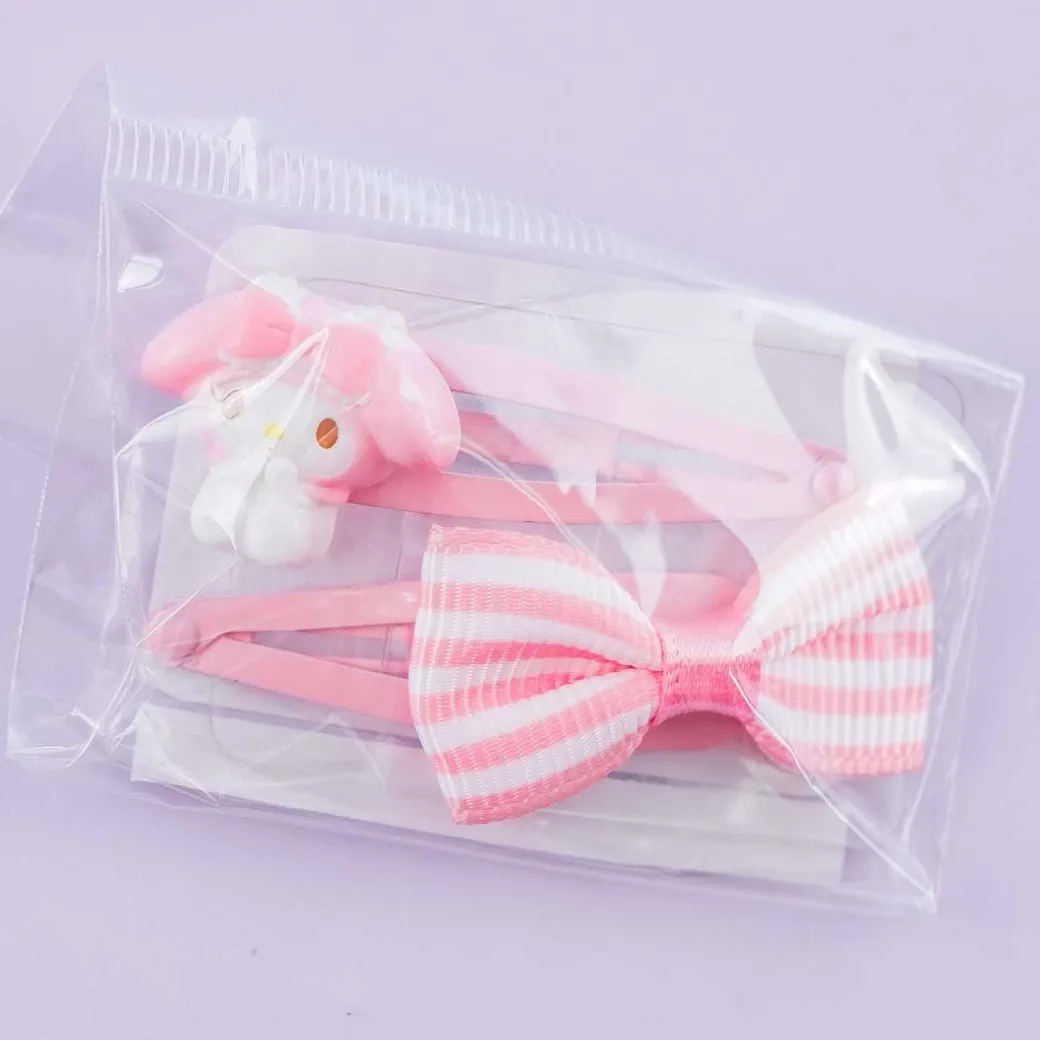 - A pair of kawaii hair clips featuring a My Melody decor and a ribbon