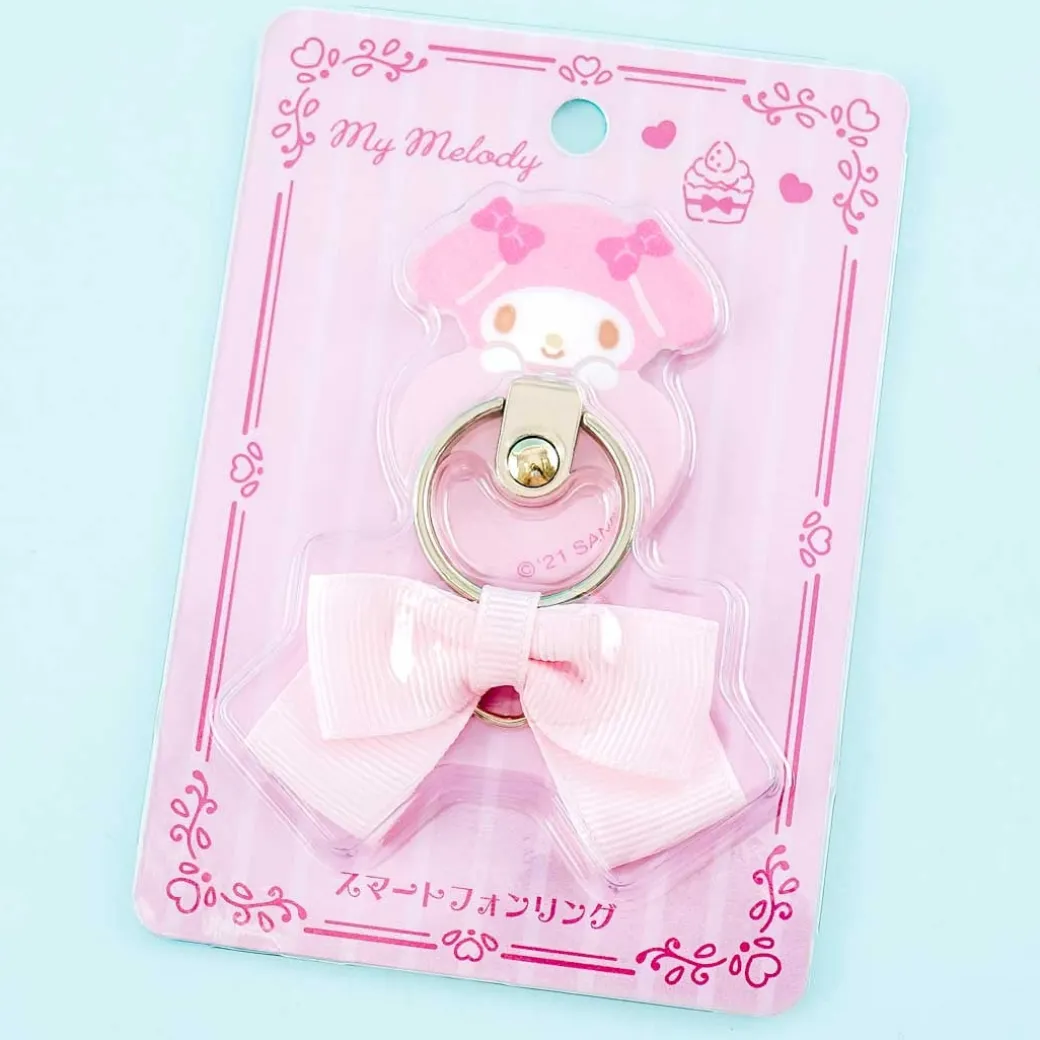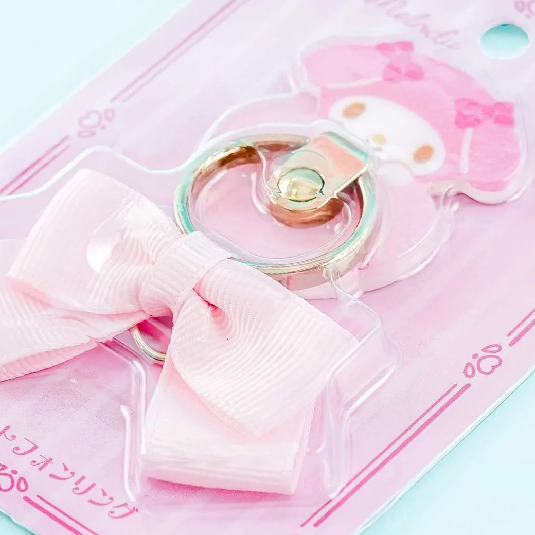 - A super kawaii phone ring featuring a print of My Melody and a ribbon decor