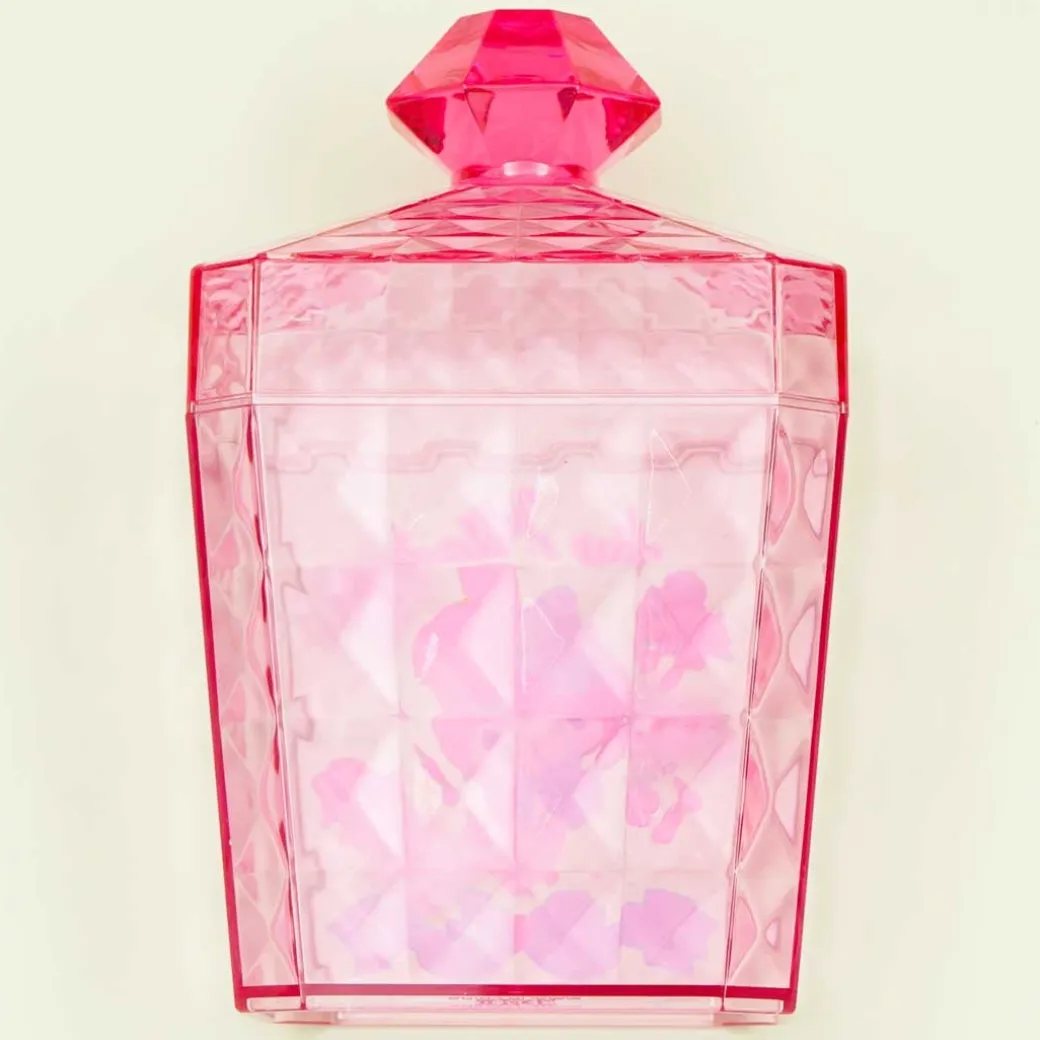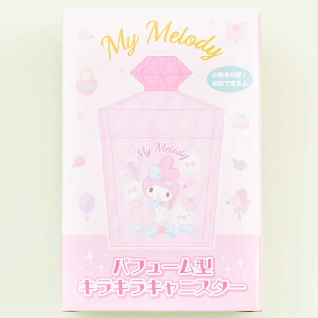 - A kawaii perfume bottle-shaped canister illustrated with My Melody and roses
