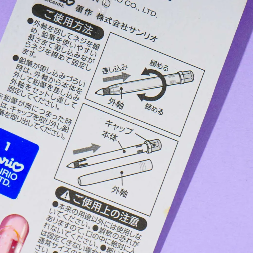 This cute pencil extender features kawaii illustrations of My Melody with pretty ribbons and rosette badges. Attach it to a super short pencil for a proper grip while writing!