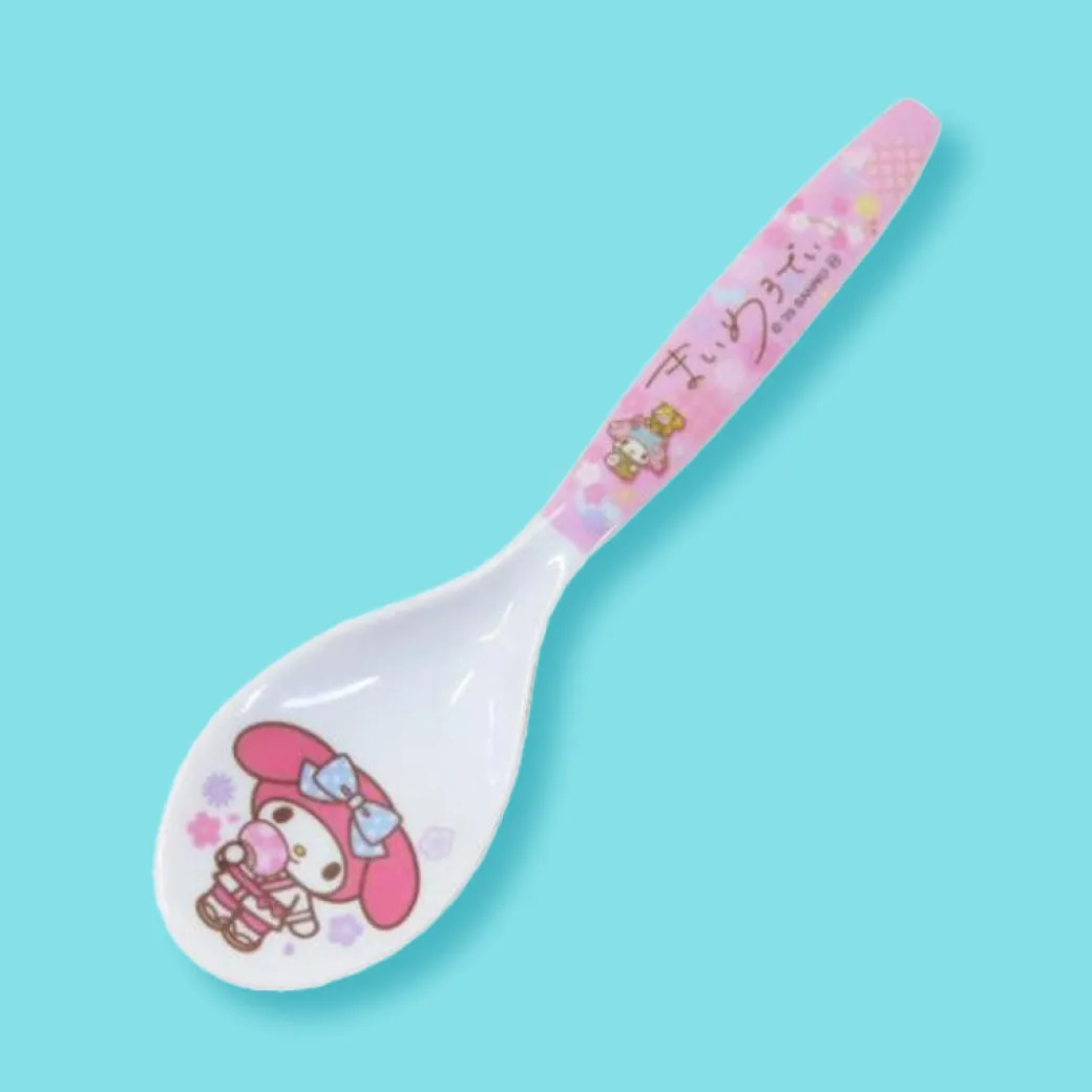 This kawaii plastic spoon is perfect for enjoying a hot bowl of soup! It features a super cute print of My Melody and cherry blossoms. The handle also comes with a hook for placing at the side of your bowl.