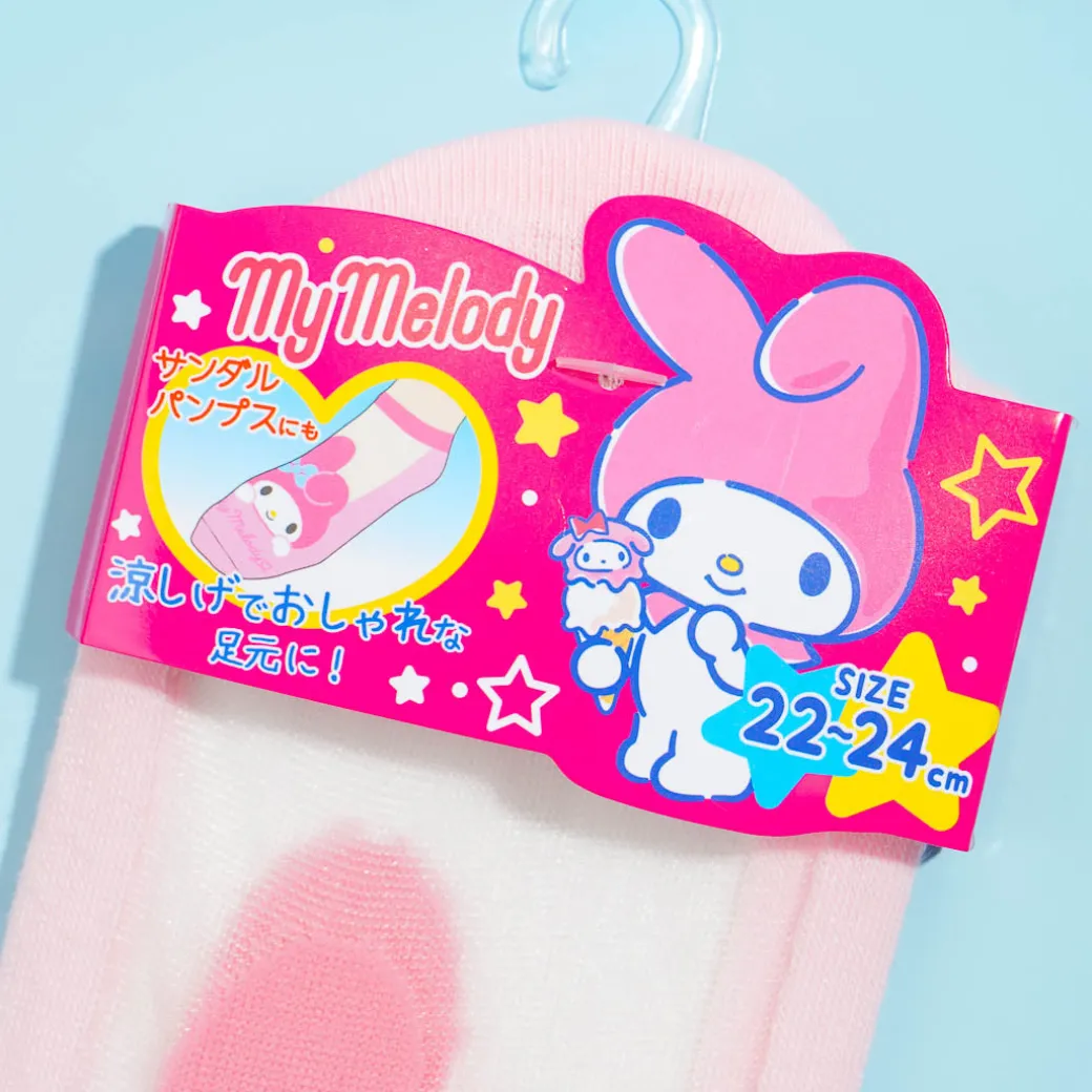 This cute pair of socks illustrated with My Melody has a transparent mesh section that gives it a nice dainty design! Wear it with cute closed-toe shoes or sandals. It’s the perfect addition to your sock drawer!