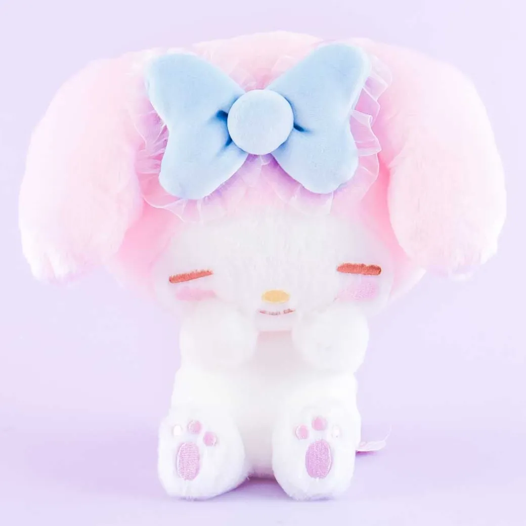 - A cute medium-sized My Melody plushie shyly raising its hands to its blushing cheeks