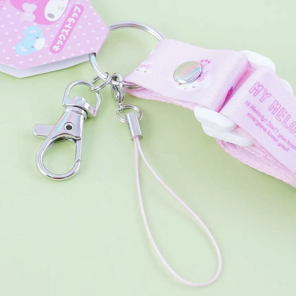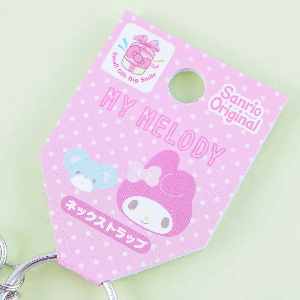 - A cute lanyard covered in prints of My Melody and her friends with teacups