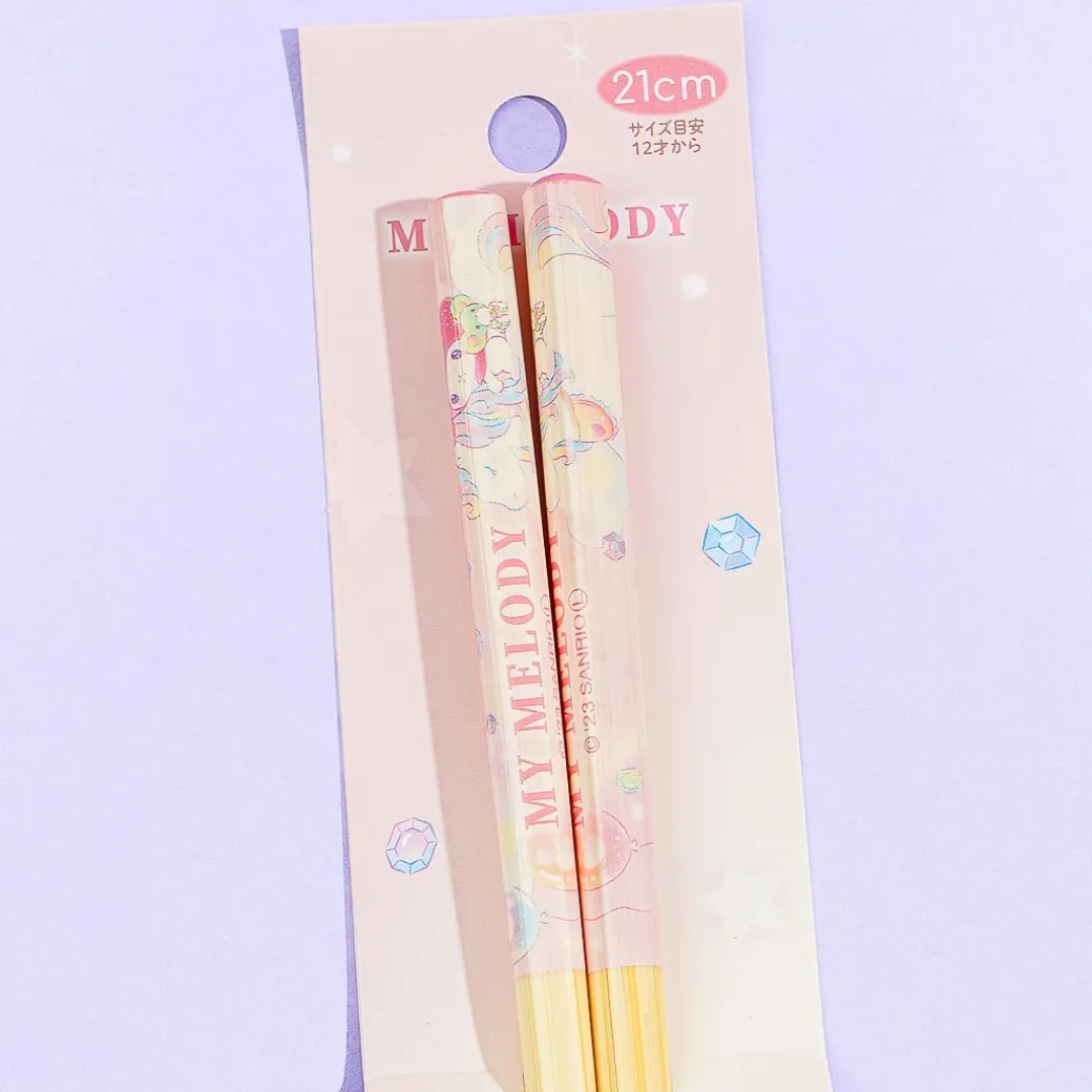 These super cute bamboo chopsticks feature kawaii prints of My Melody playing with her new friend, the Glitter Unicorn! Have fun eating your favorite dim sum using this reusable pair with a non-slip tip.