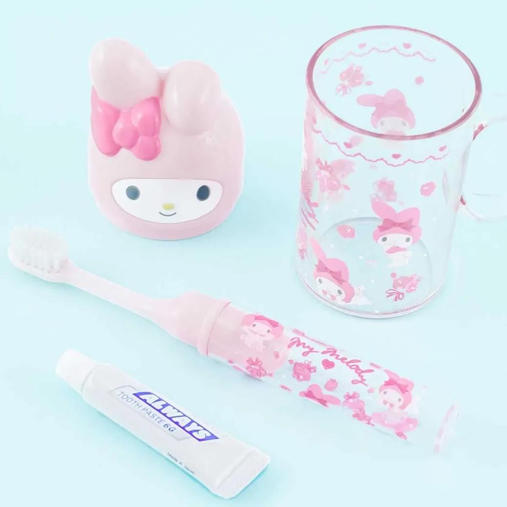- A kawaii toothbrush and cup set decorated with illustrations of My Melody
