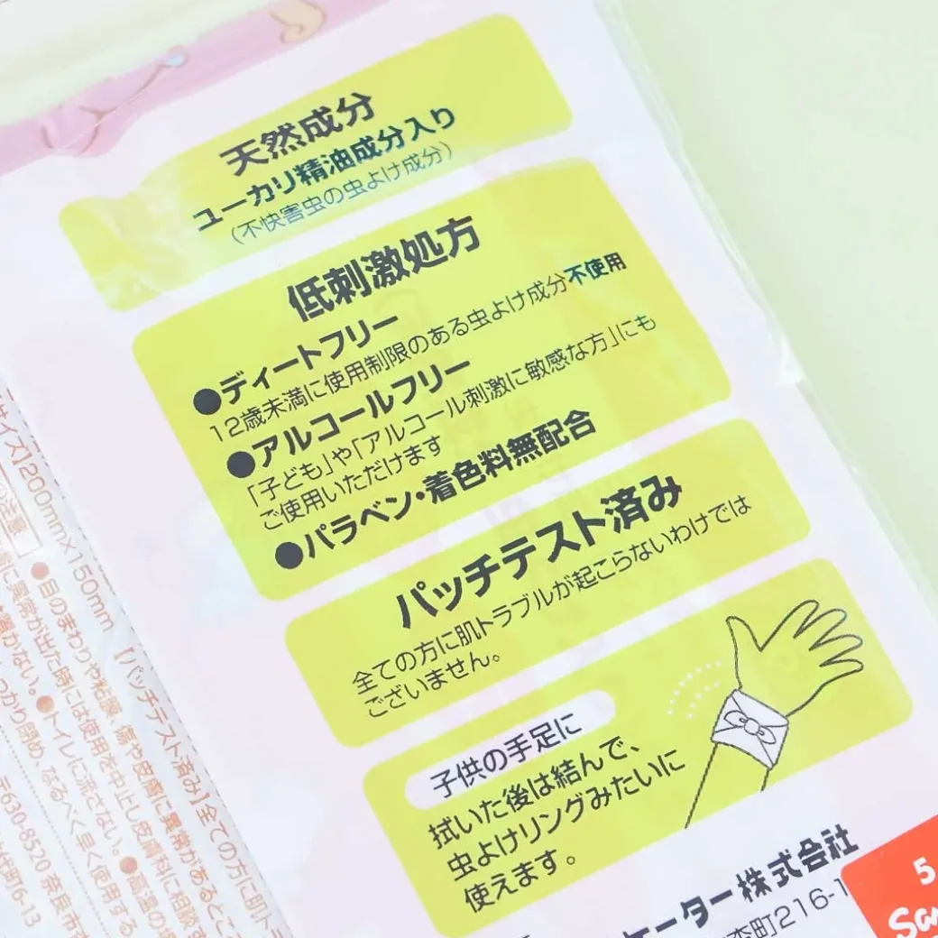 - A pack of soap-scented wet tissues featuring prints of My Melody on the packaging