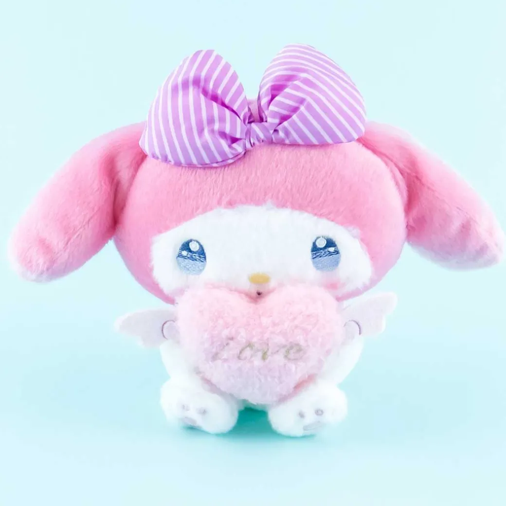 - A cute medium-sized My Melody plushie carrying a winged heart inscribed with the word love