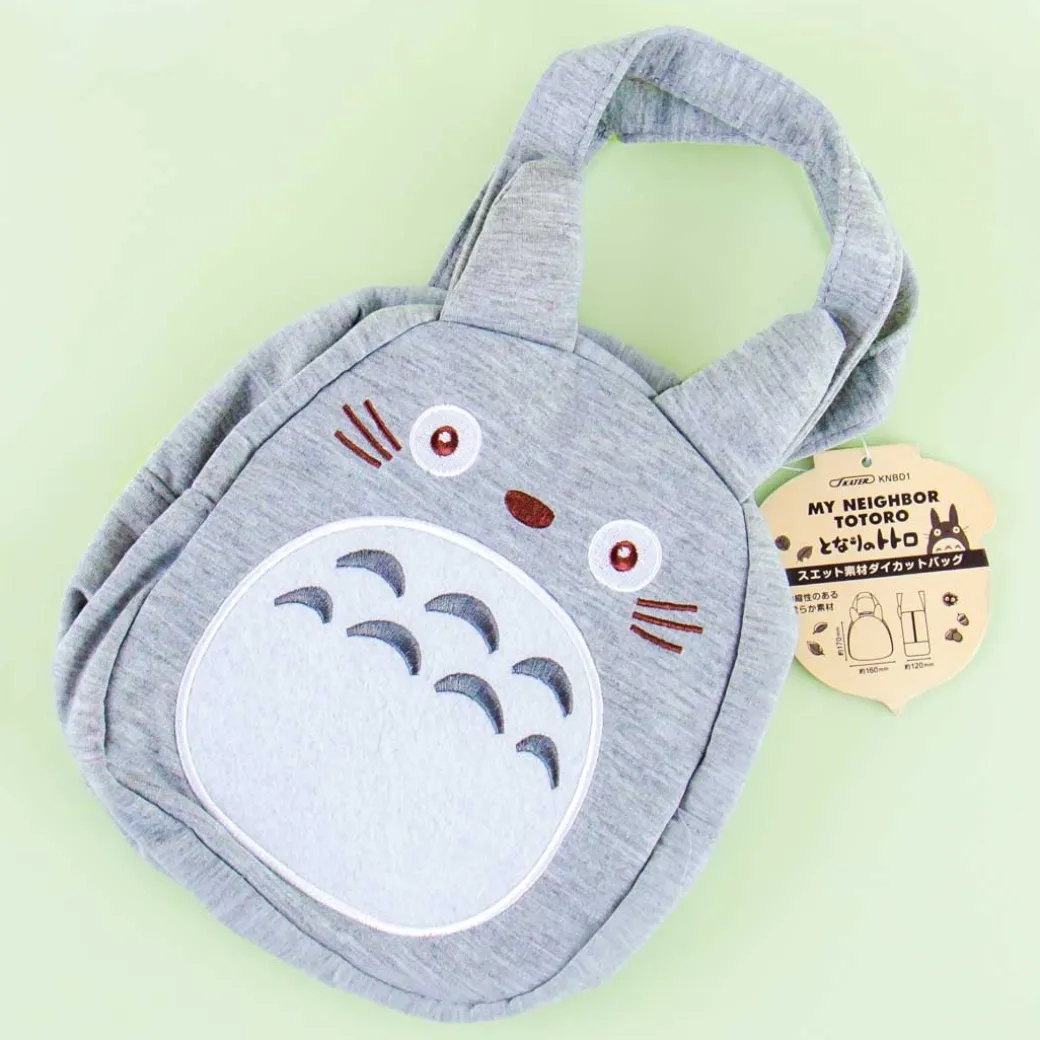 - A die-cut zippered handbag shaped like Totoro