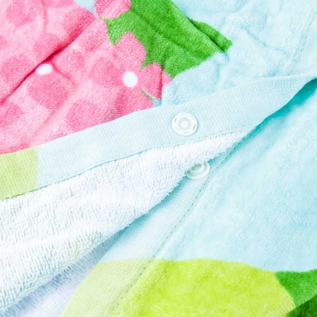 - A super kawaii bath towel illustrated with My Neighbor Totoro characters in a field of flowers