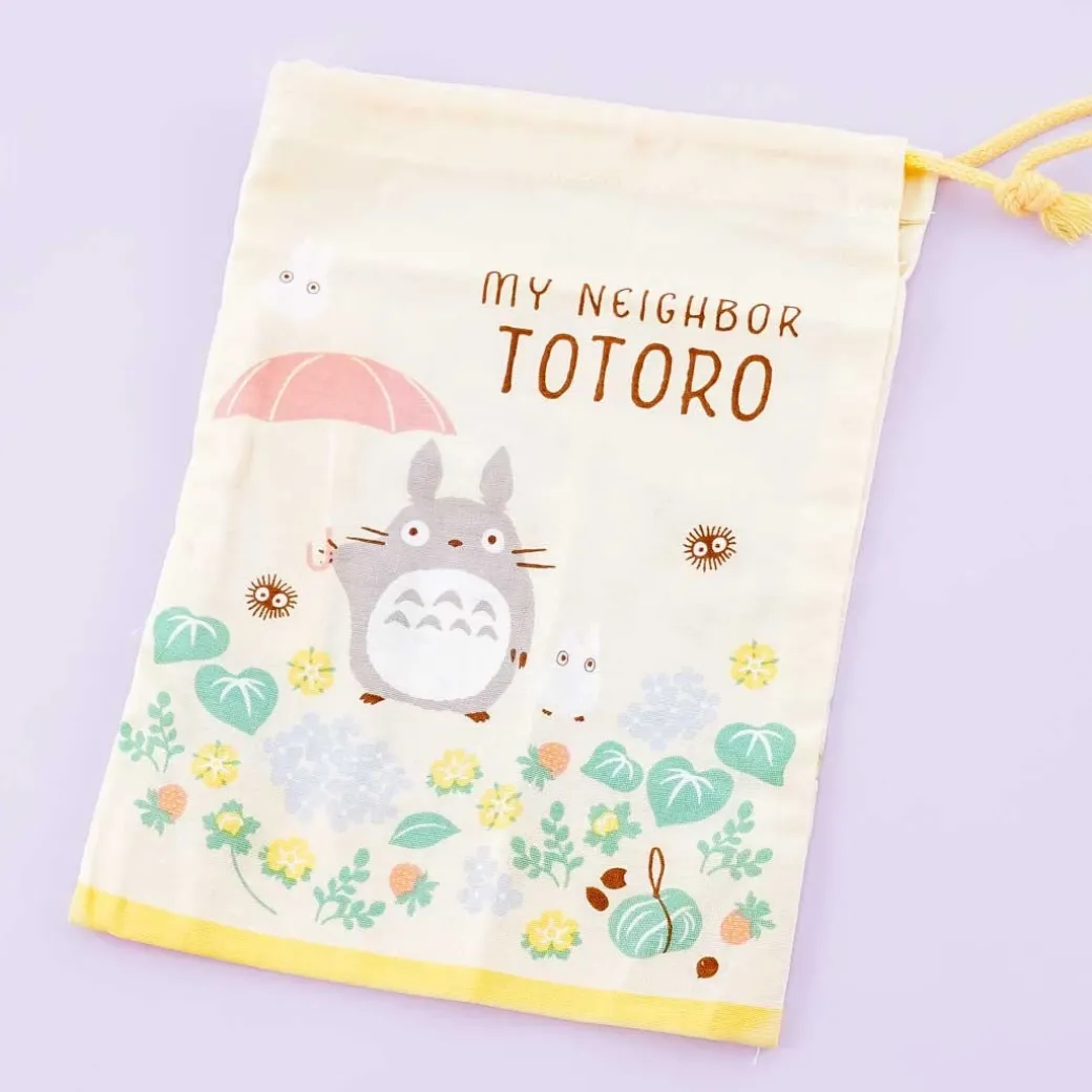 - A super cute drawstring dental care bag featuring Totoro and friends playing in the forest