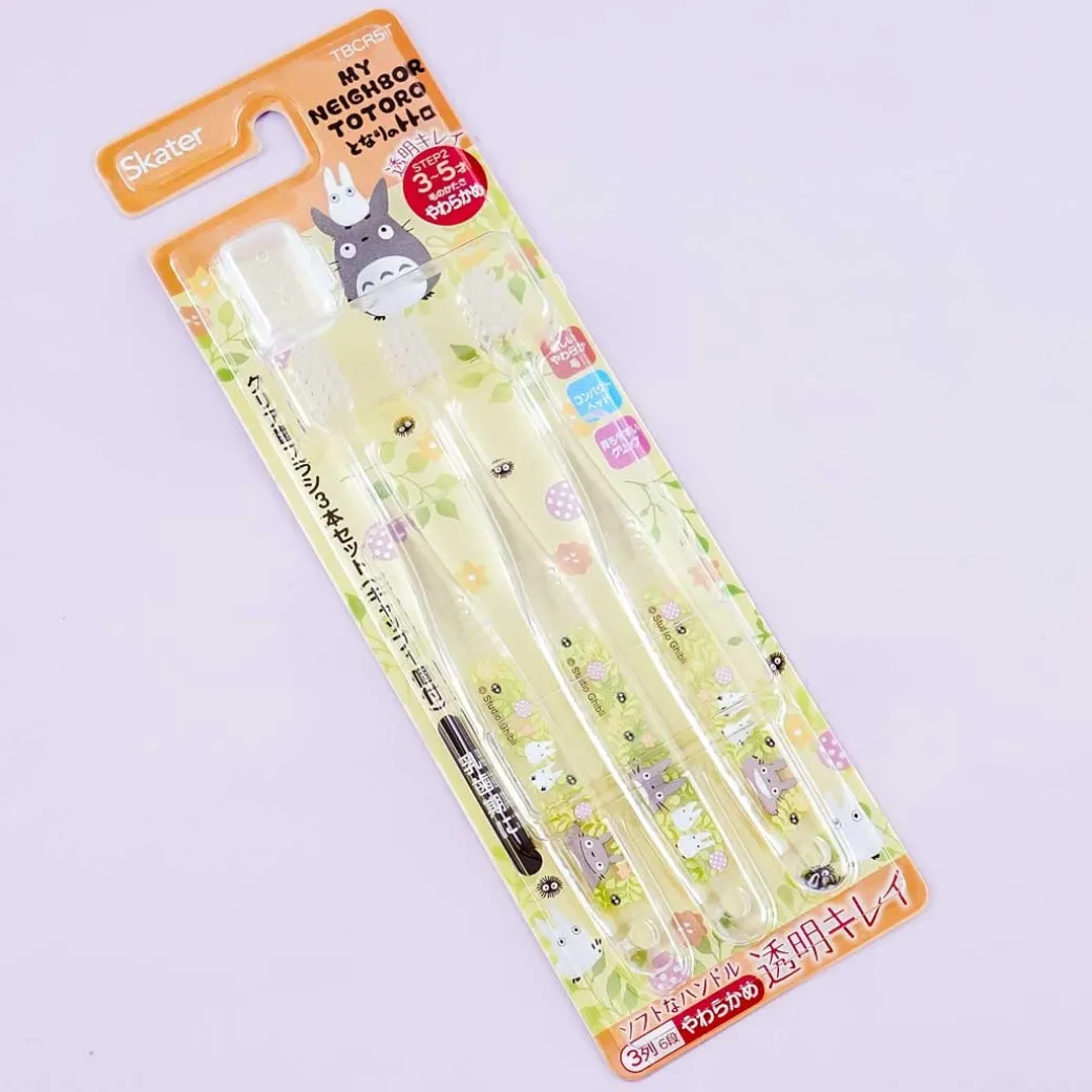 - A cute set of kiddie toothbrushes illustrated with My Neighbor Totoro characters in a garden