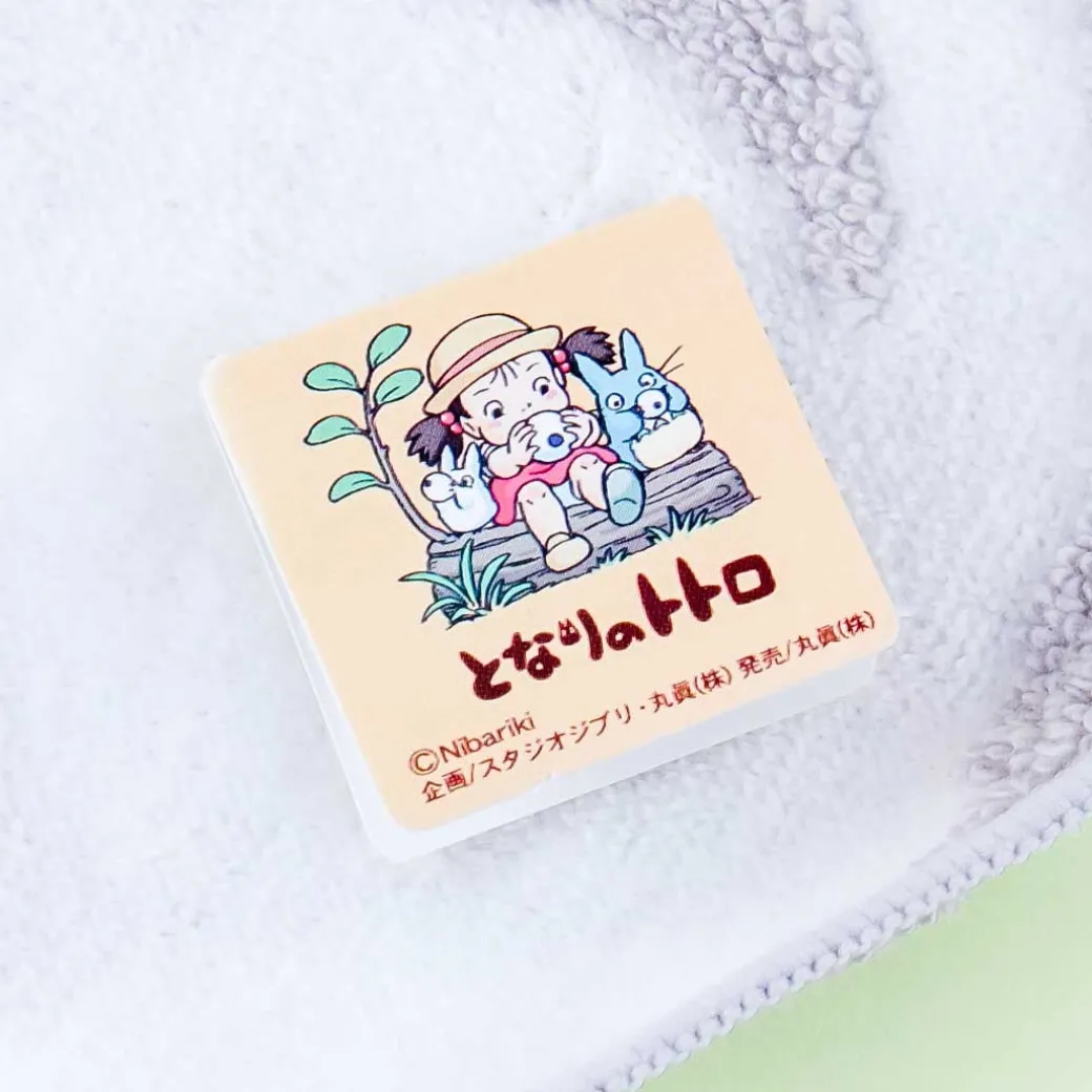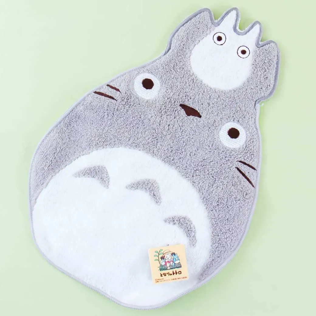 - A cute die-cut hand towel featuring Totoro playing with Chibi Totoro