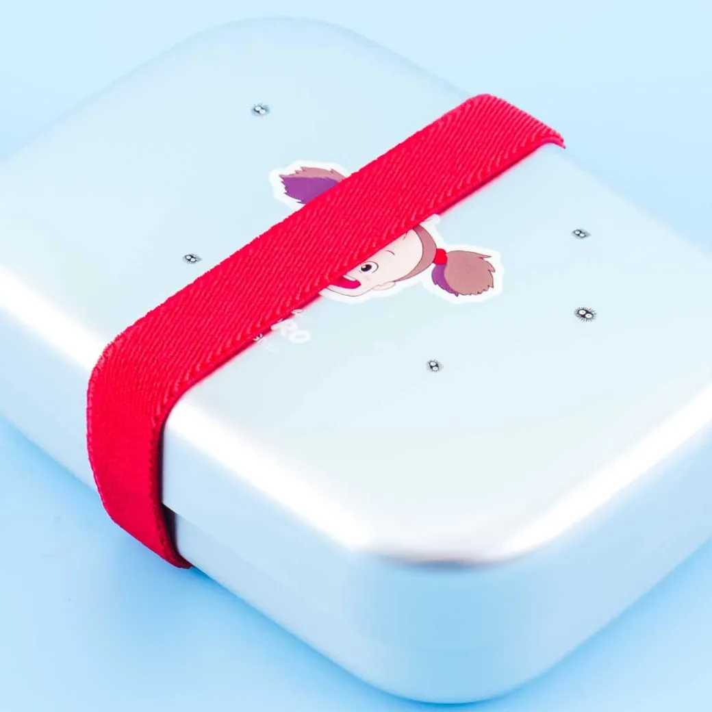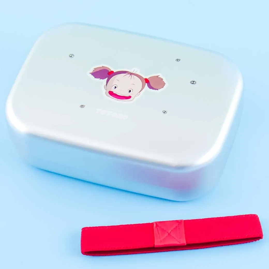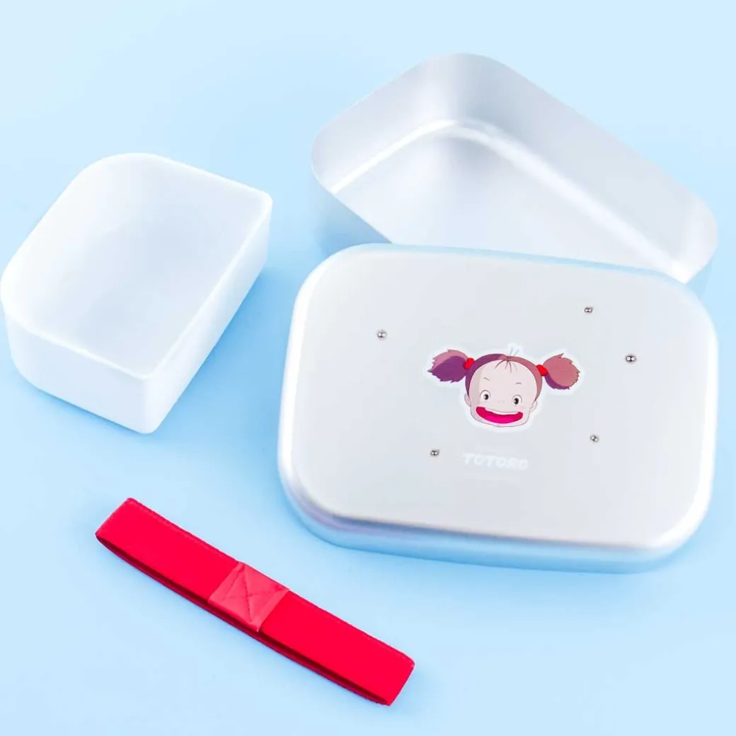 - A cute aluminimum bento box illustrated with Mei and the susuwatari from My Neighbor Totoro