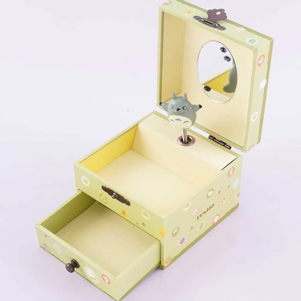 - A cute music box featuring prints of Totoro, mushrooms, and flowers