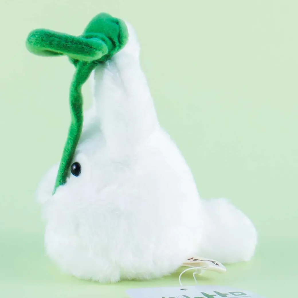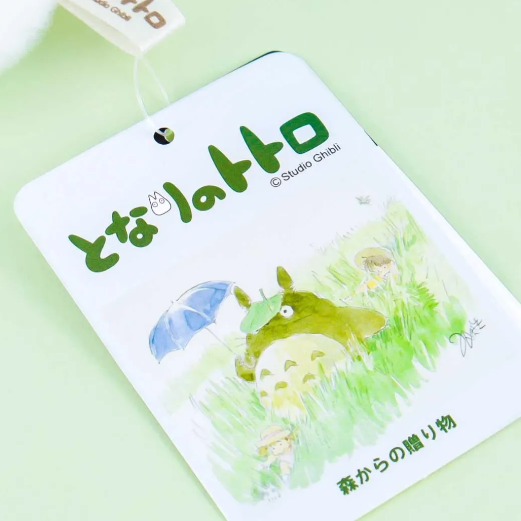 - A fluffy Chibi-Totoro character plushie holding a leaf umbrella