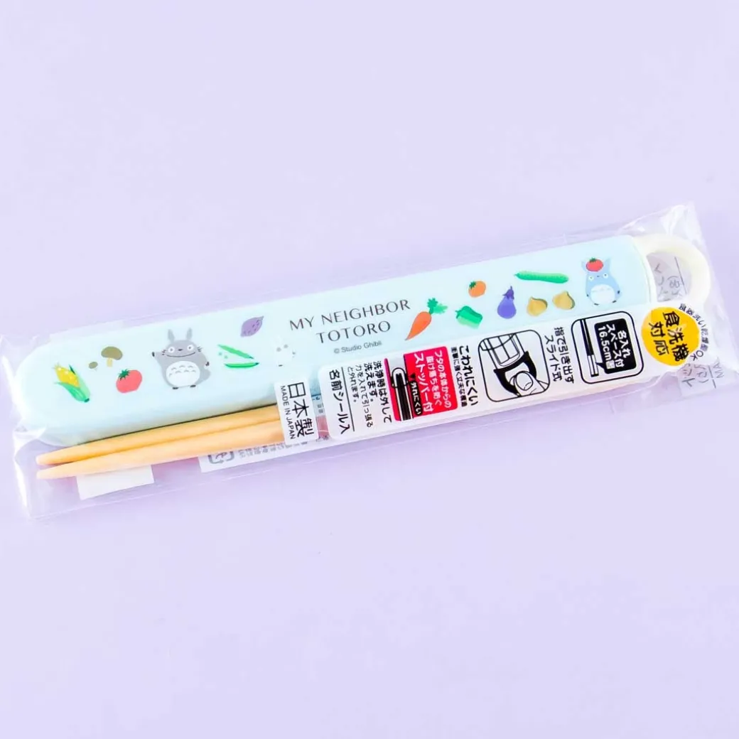 - A pair of plastic chopsticks featuring prints of Totoro with vegetables