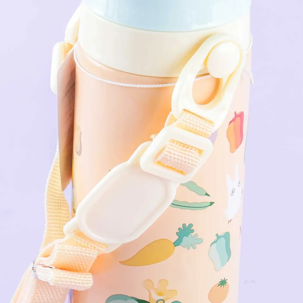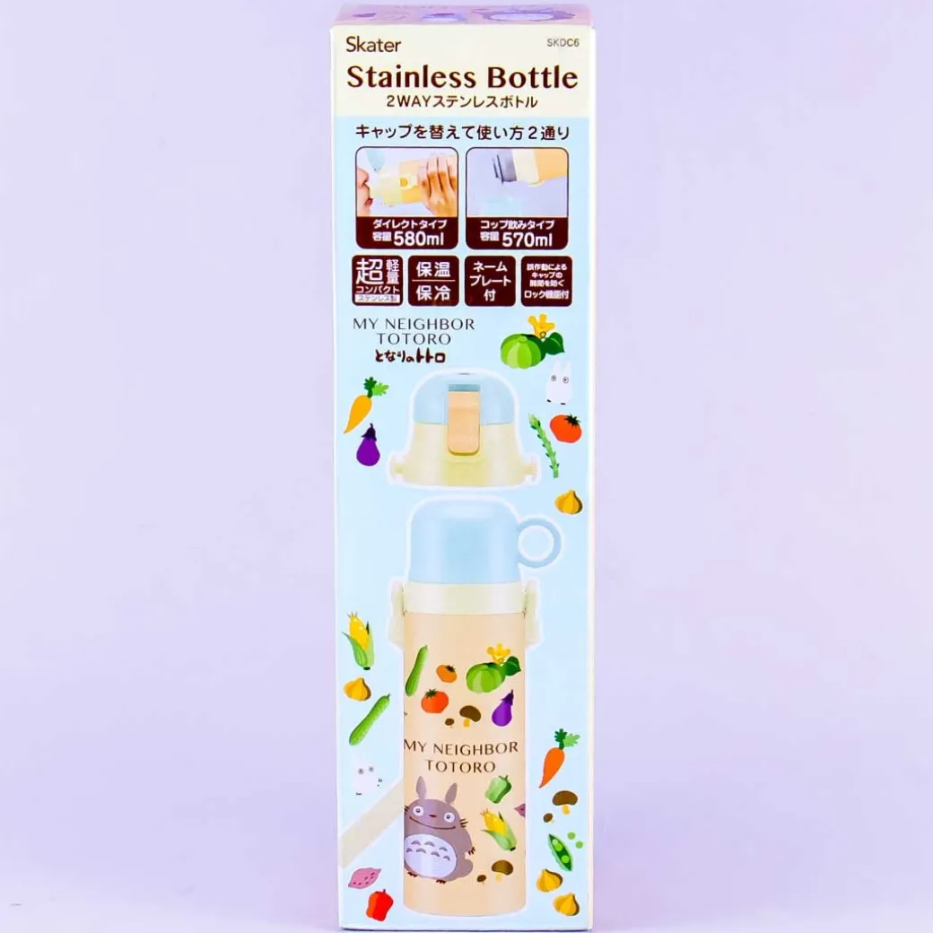 - A kawaii stainless steel bottle featuring My Neighbor Totoro characters playing with vegetables