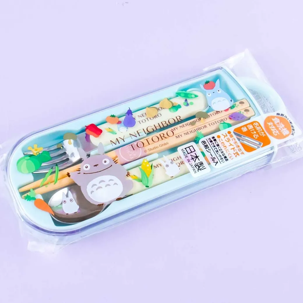 - A super cute utensil set illustrated with prints of My Neighbor Totoro characters together with vegetables