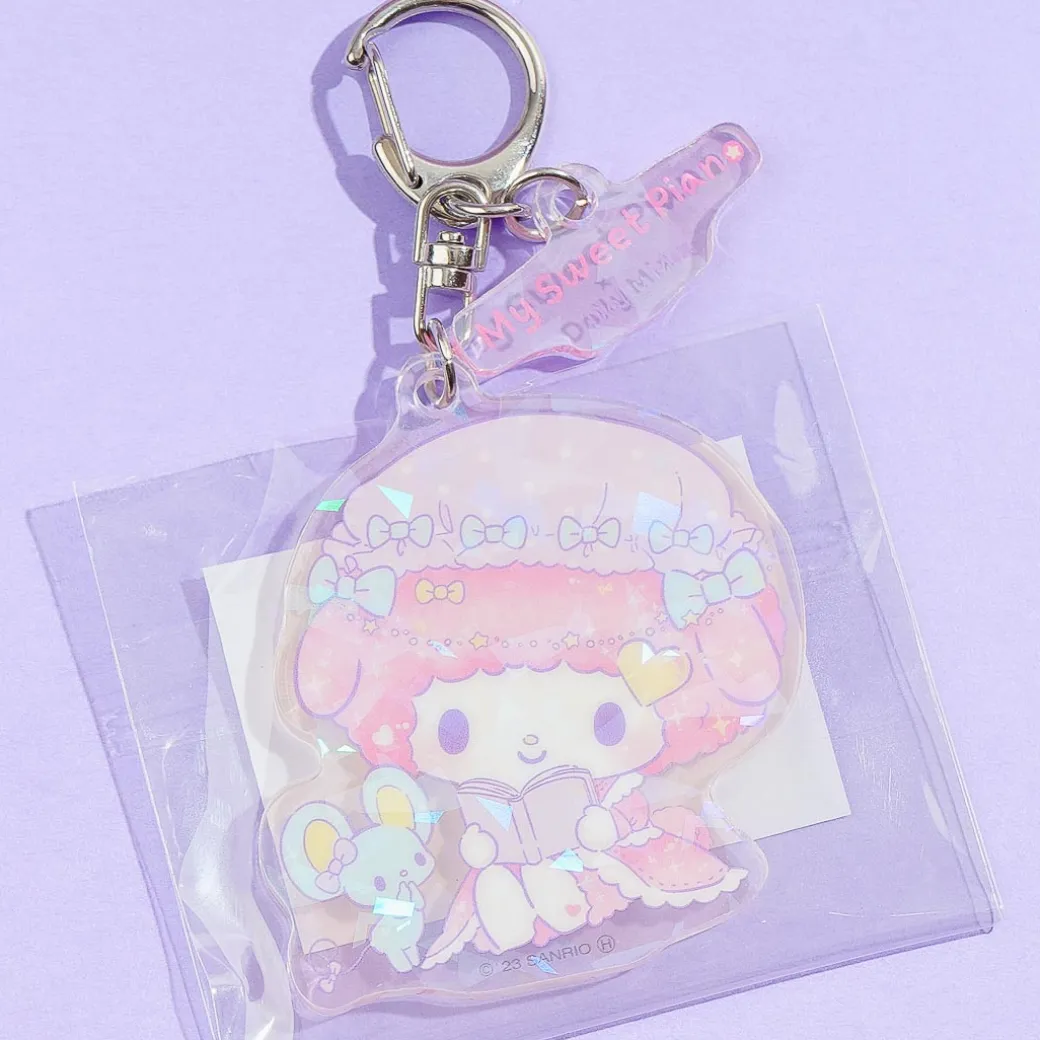 Attach this kawaii acrylic charm to your backpack using its metal hook! It features a cute holographic illustration of My Sweet Piano wearing a Lolita dress.