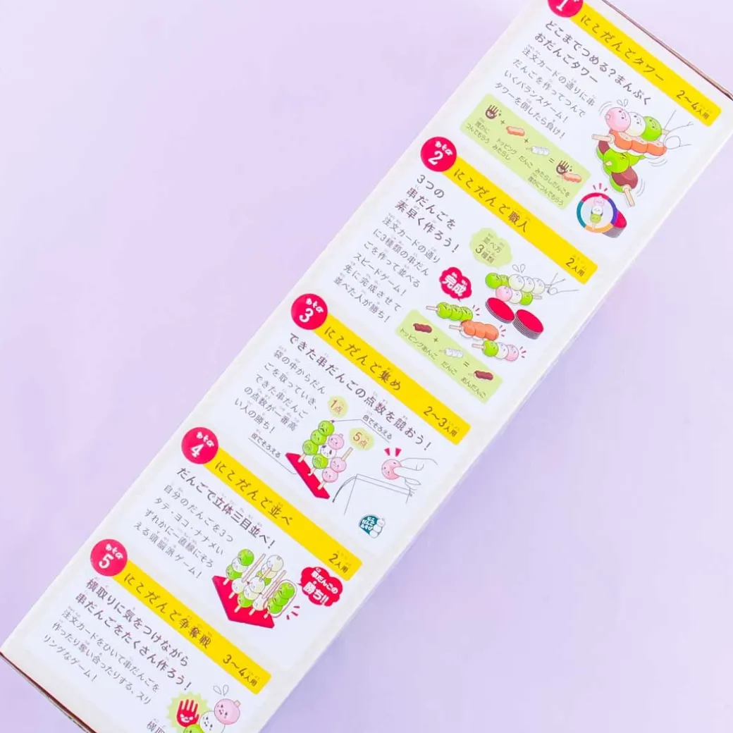 - Includes: 33 x dango balls, 3 x toy mitarashi, 3x toy anko, 11 x skewers, 3x dumpling stands, 32 x order cards 1 x bag, and 1 x serving manual