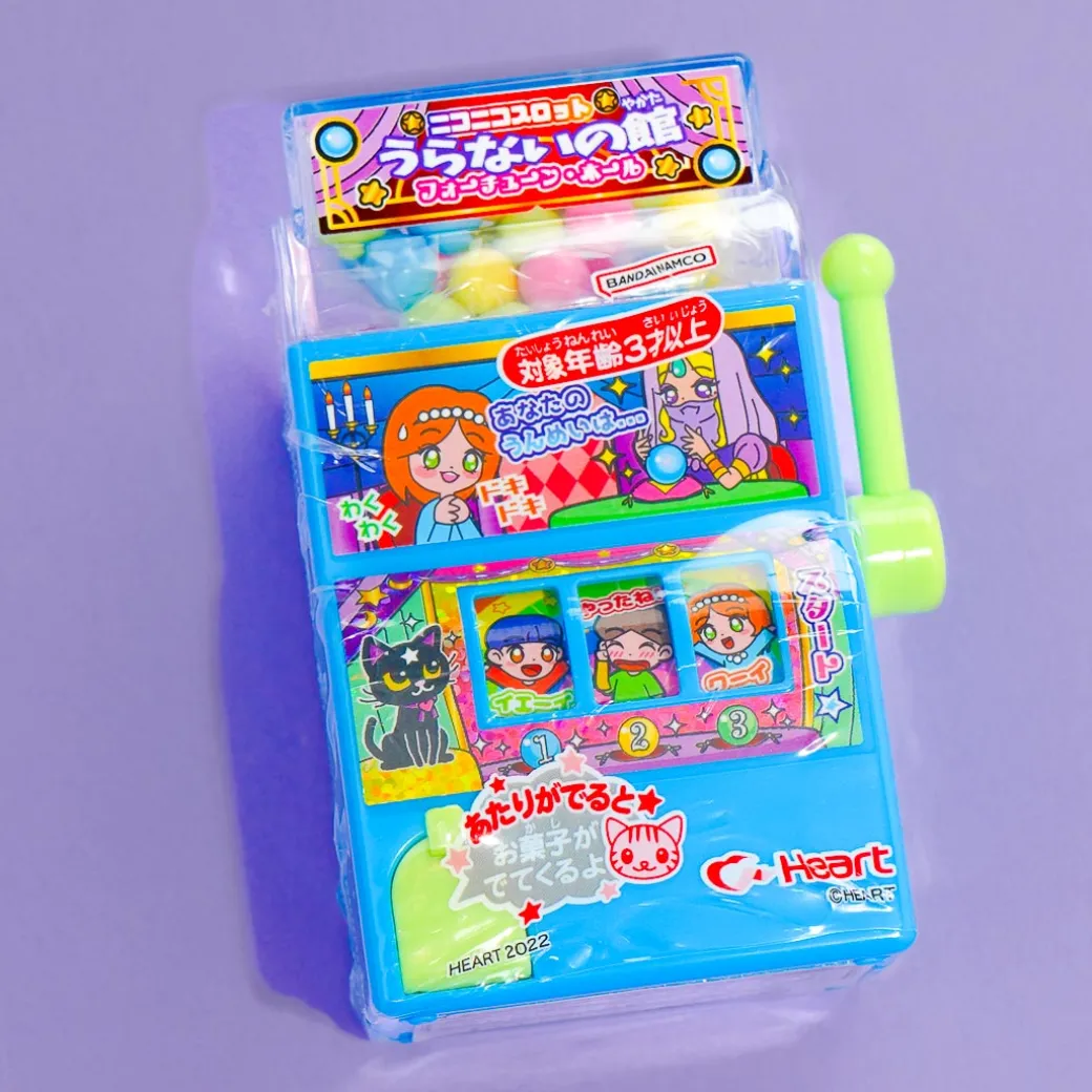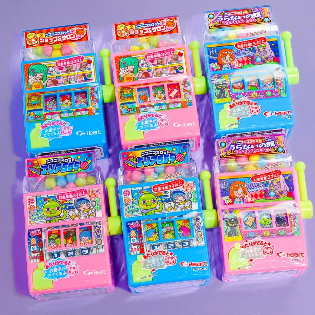 - Includes: 1 x mini slot machine candy dispenser and 1 x pack of ramune candy balls