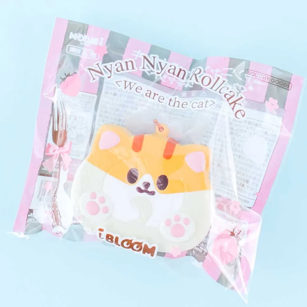 - A roll cake squishy charm shaped like Mugi the cat from the Nyan Nyan series